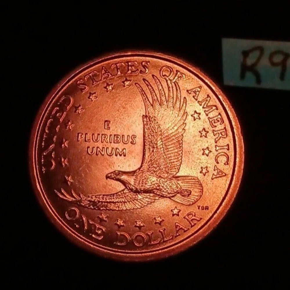 The Sacagawea Dollar Coin has a very unique composition. Its physical makeup is a three-layer clad construction - pure copper sandwiched between outer layers of manganese brass. Mint date is 2000 in Philadelphia This is the second US coin to feature a woman. Not seen often in circulation but it legal tender Great addition to any collection