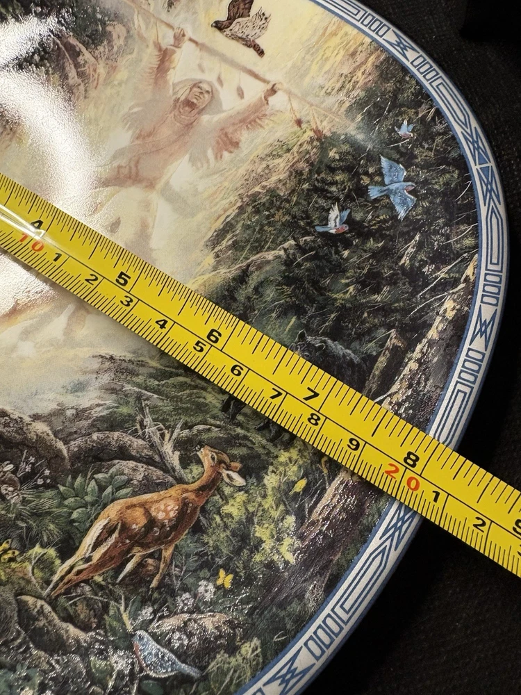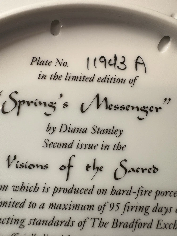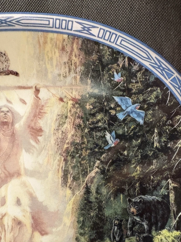 Crafted with precision, the "Springs Messenger-Visions Of The Sacred" collector plate is a testament to the artistry of the late 20th century. With its vibrant multicolor palette and ornate decorative style, this piece is a stand-out example of American art pottery from the 1990s. Produced by Bradex, the plate is made from high-quality porcelain and boasts a unique production style that emphasizes intricate details and fine craftsmanship. Whether displayed as part of a collection or as a standalone piece, it captures the essence of the era and celebrates the cultural richness of its time.