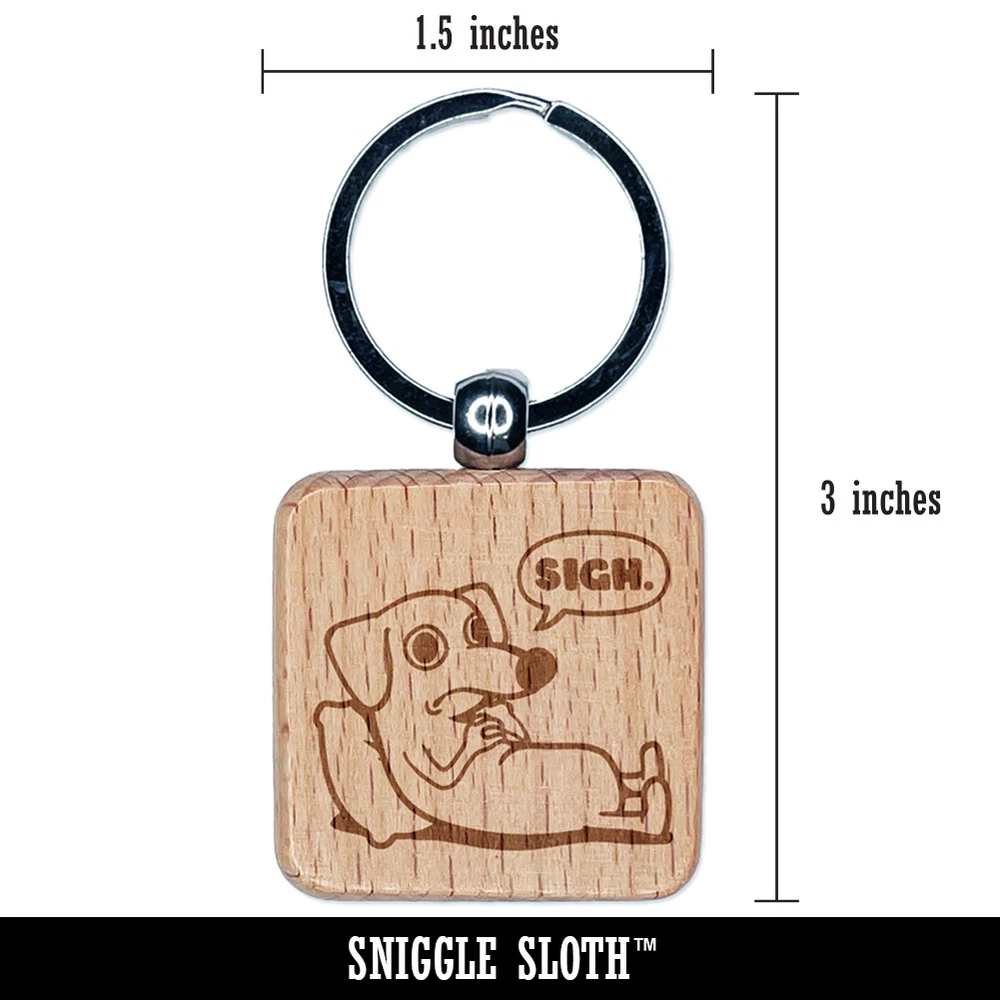 Sad Dachshund Weiner Dog Sigh Engraved Wood Square Keychain Tag Charm
