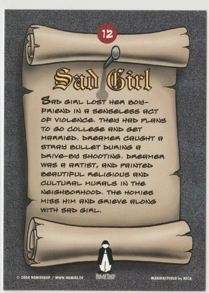 Sad Girl #12 Homies Swap Cards 2004 NECA Lowrider Chicano Barrio East LA personal stock photos centering of cards may vary compared to listed images