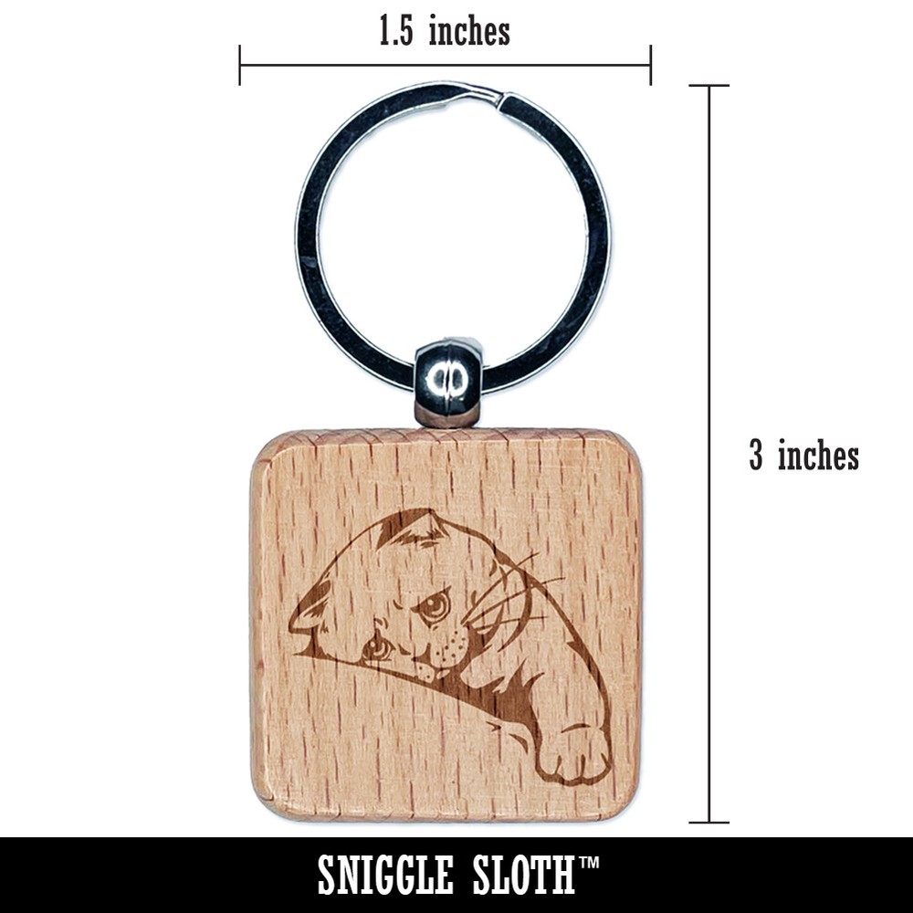 Sad Cat With Deepest Sympathy Engraved Wood Square Keychain Tag Charm
