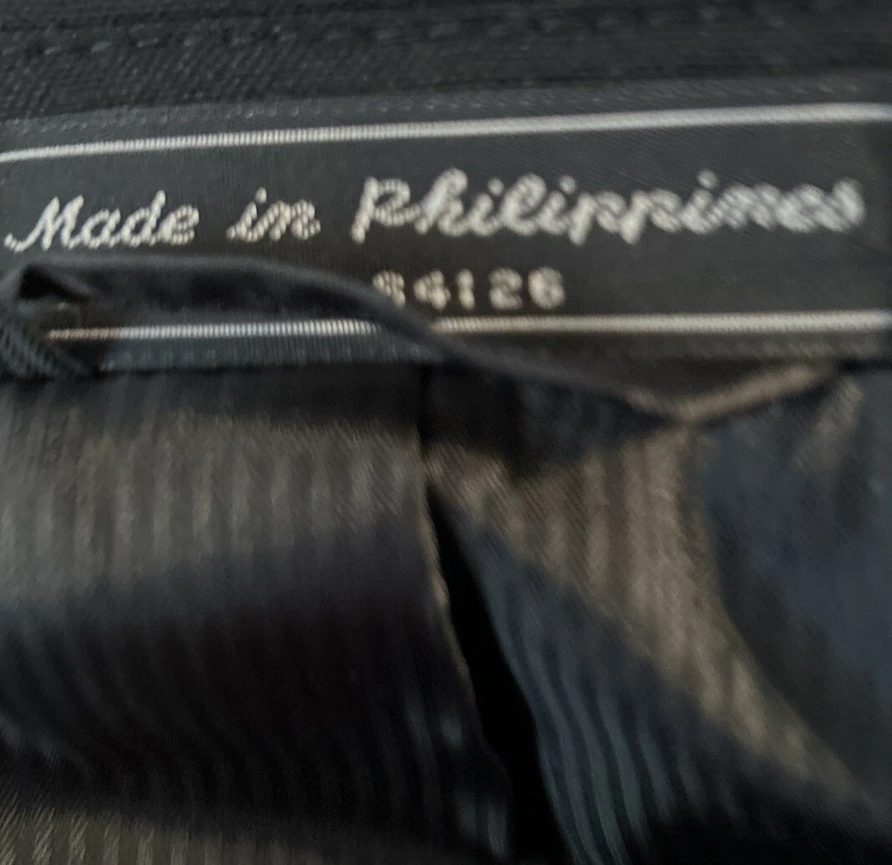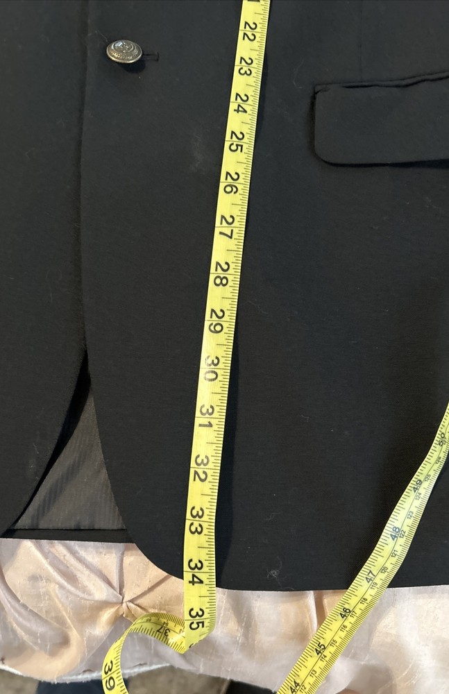Elevate your style with this Saddlebred black wool sport coat jacket. Designed for the modern man, this blazer features a two-button closure, big and tall size type, and a classic 1 piece style. The jacket is made of high-quality wool material with a wool lining and has a sleek black color that adds a touch of sophistication to any outfit. The blazer has been dry cleaned and ready to wear.