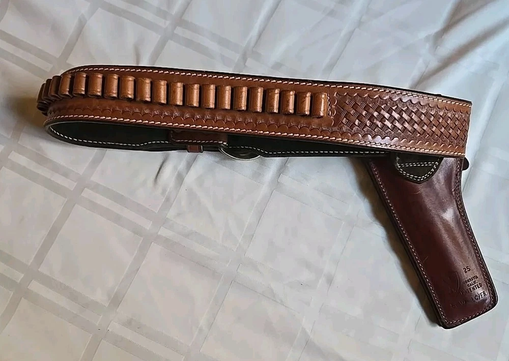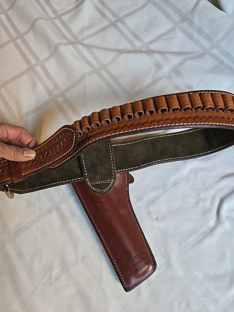 Safariland S&W LG/FR Holster Tooled Brown Leather 25 With Ammo Belt Sz 36 VTG. Good condition, see pictures. Heavy duty Leather, Beautiful details.