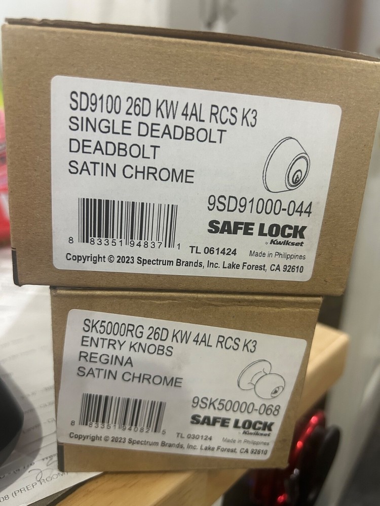 SafeLock by Kwikset Regina knob and deadbolt combo sets that are keyed alike and come in an 26D brushed chrome finish. These are perfect combo sets for exterior doors or any application security is needed.