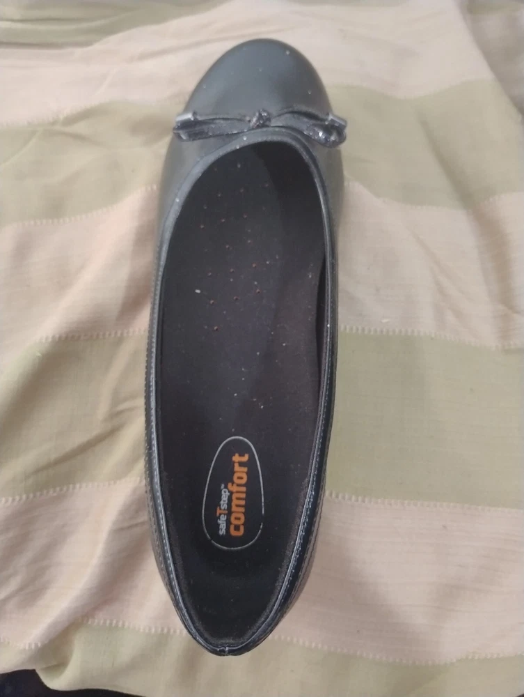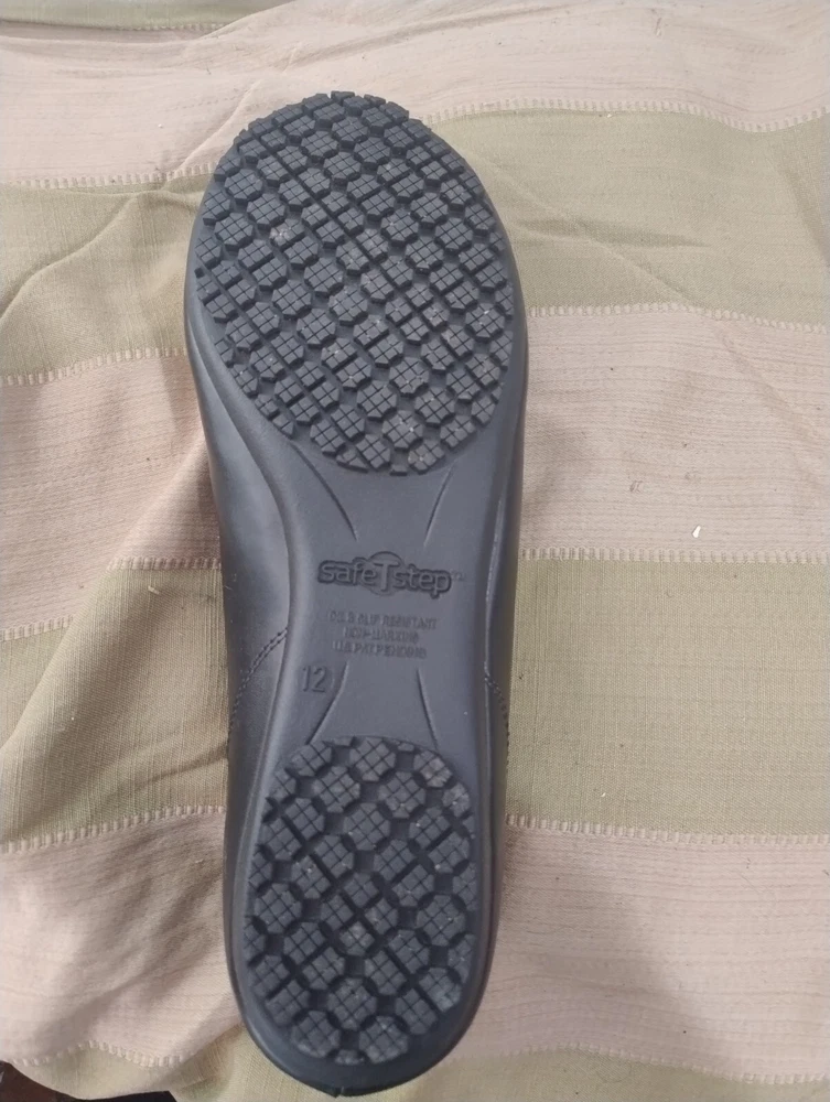 Crafted for versatility and comfort, the Safe T Step Samantha Women's Flats are a timeless addition to any wardrobe. Size 12 in a classic black hue, these shoes are a sophisticated choice for a range of occasions, from the office to evening events. The sleek leather upper material offers durability while the slip-resistant feature ensures stability on any surface.Whether you're dressing for casual outings, travel, or cocktails, these flats cater to both formal and informal settings with ease. The EU size 43 and UK size 10 equivalents ensure a comfortable fit for a variety of foot shapes. With their elegant style and practical design, these Safe T Step flats are a must-have for those who value function without compromising on fashion. The flats was only worn once or twice, but it has been sitting inside the storage room for a long time. Let me know if any questions before bidding or buying.