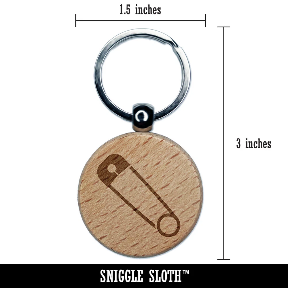 Safety Pin Engraved Wood Round Keychain Tag Charm