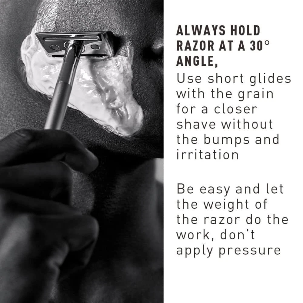 Number of Blades 10 Unit Count 1 Count Special Feature Double Edge, Brass Weighted Handle Skin Type All About this item Superior Shaving Experience: Our Bevel Safety Razor is designed specifically for men with coarse hair, ensuring a comfortable and irritation-free shaving experience. Say goodbye to razor bumps and hello to smooth, clean shaves. Precision Engineering: The brass weighted handle provides excellent balance and control, allowing for precise shaving movements. With our double blade safety razor, you can achieve a close and accurate shave, reaching even the most challenging areas effortlessly. Long-lasting Performance: Each package includes 10 double edge safety razor blade refills, ensuring long-lasting performance without the need for frequent replacements. When it’s time for new blades, experience the cost-effectiveness of our Bevel Safety Razor Replacement Blades 20 Pack. For Best Use: Always hold the Safety Razor at a 30° angle. Holding the Bevel logo, on the head of the razor, against your skin, tilt the handle until the blade just touches your skin. Be easy and let the weight of the razor do the work, don’t apply pressure. Keep your glides short and don’t forget to always shave in the direction your hair is growing. Easy to Use and Maintain: Our single blade razor is designed with simplicity in mind. It's easy to assemble, use, and clean. With its user-friendly design, you can quickly achieve a professional-grade shave in the comfort of your own home. Product details Product Dimensions : 1.8 x 2.3 x 5.2 inches; 3.52 ounces Item model number : 800439