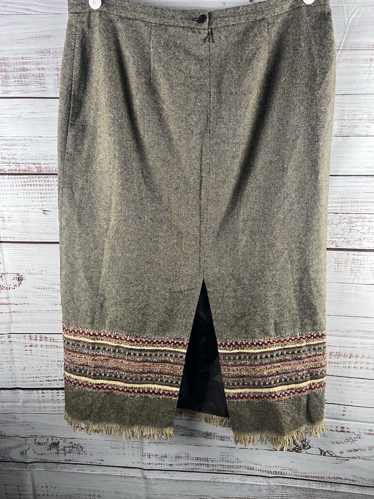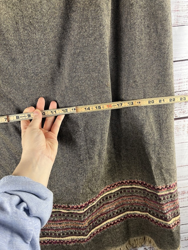 Elevate your wardrobe with the Sag Harbor Midi Skirt, a timeless piece that melds vintage charm with contemporary style. The skirt showcases an A-line silhouette, perfect for a variety of occasions, and is crafted from a luxurious wool blend, ensuring both warmth and comfort. Its plus-size fit caters to a comfortable and flattering shape for size 18 wearers. The skirt is beautifully detailed with a fringe accent that adds a touch of bohemian flair, while the black color provides a versatile base for any top. It features a smooth zipper closure, complemented by button accents for a classic finish. Thematically, it captures the essence of festival and Southwestern vibes, making it an ideal choice for those who appreciate a blend of cultural styles.