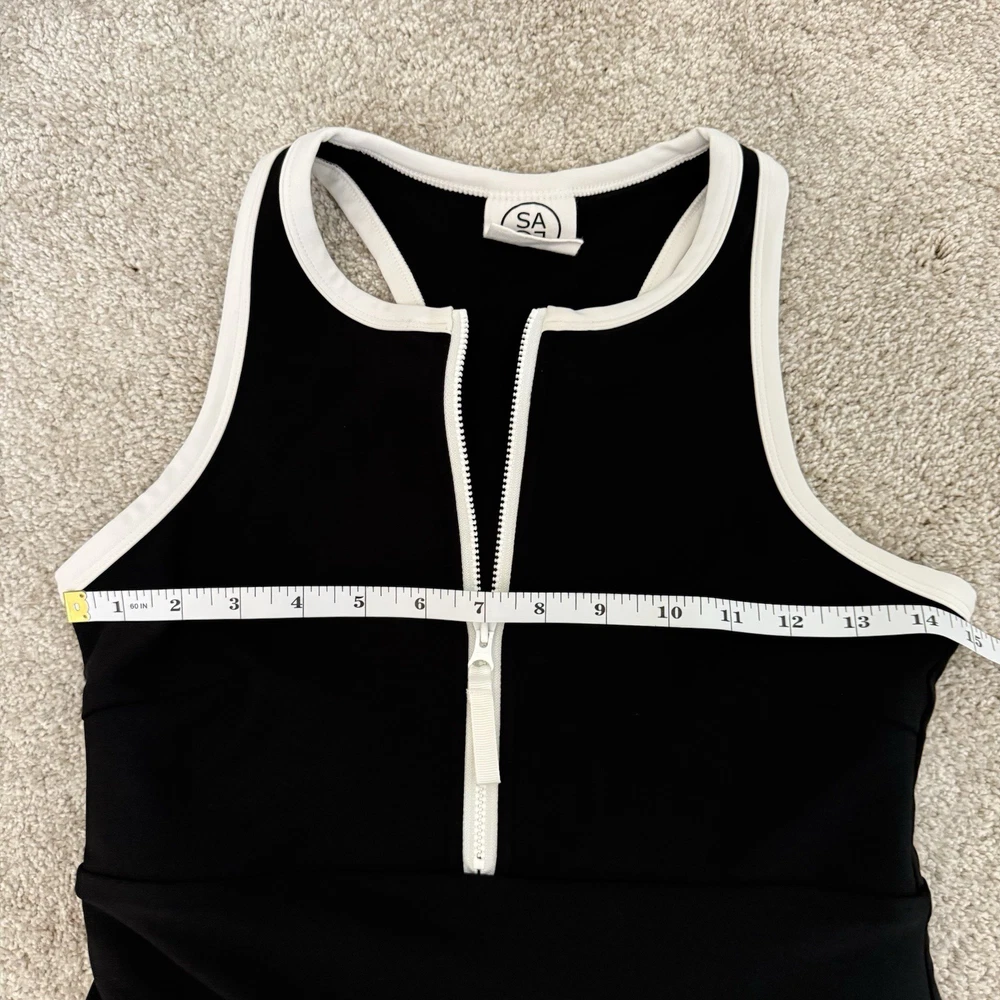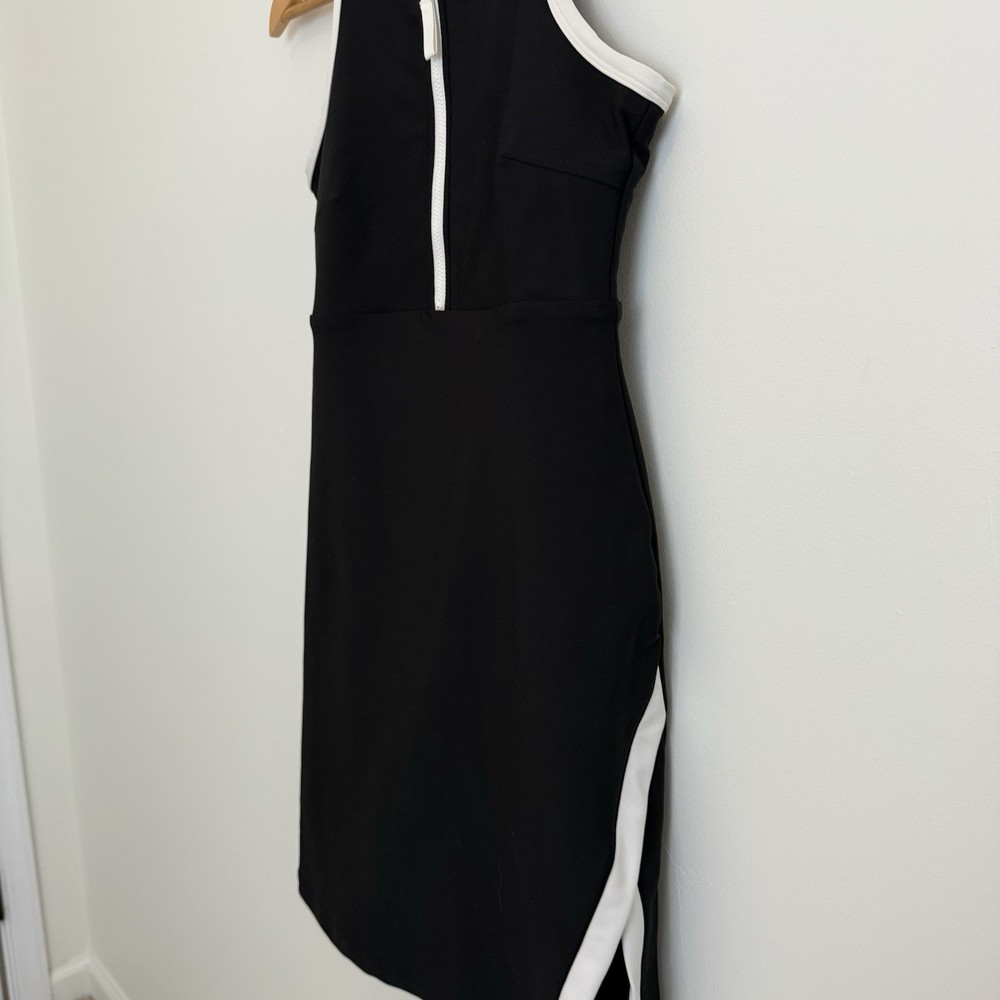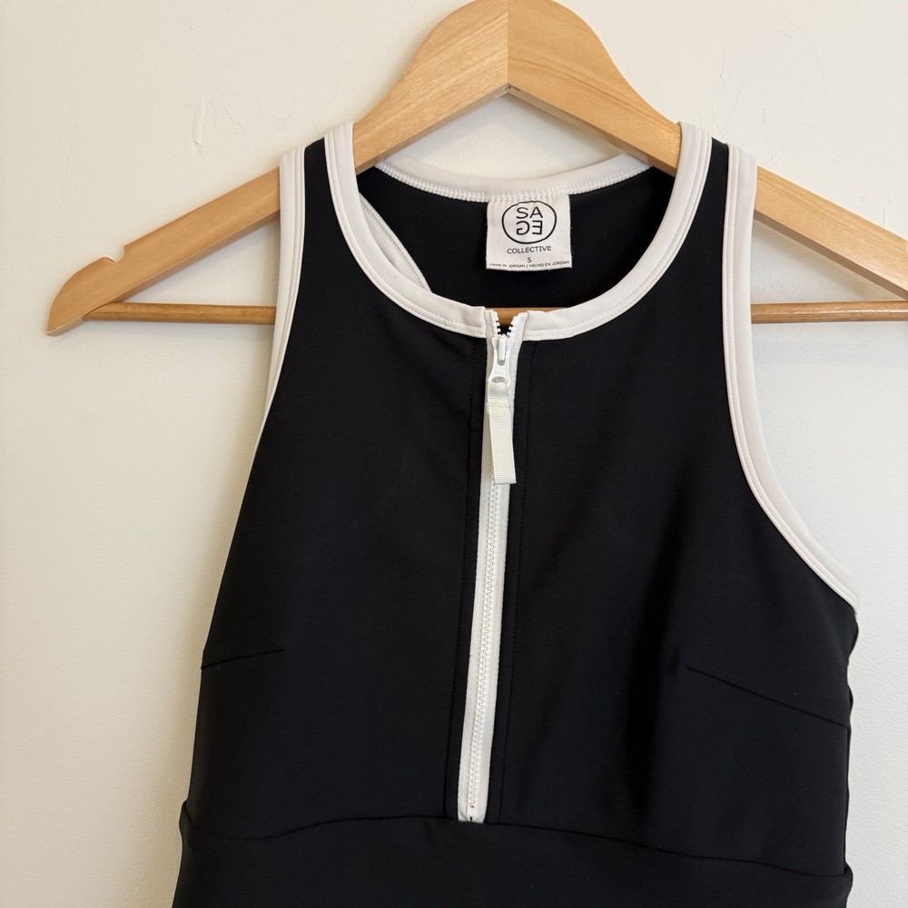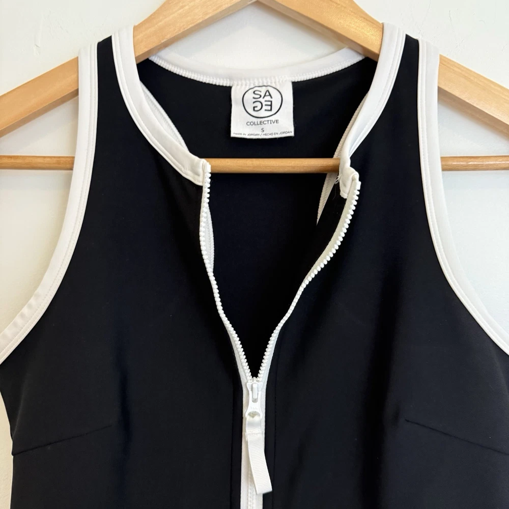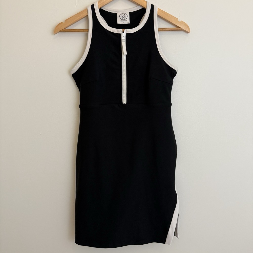 The Sage Collective Active Sport Dress in women's small size features a stylish black and white trim design, perfect for tennis, golf, or walking. Made from a blended fabric of polyester and spandex, this skirt offers a comfortable and stretchy fit for active occasions. With a solid pattern, easy care instructions, and a pull-on closure, this athletic skort provides both style and functionality for the active woman in the warmer seasons of spring and summer. Great preowned condition with no rips, stains or tears! See photos for measurements.