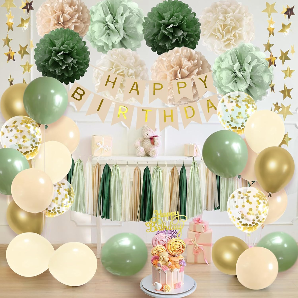 Store New Arrivals Add to Favorite View Feedback Contact Fast deliveries to the customer's home Quality customer service John Make the customers happy! Sage Green Birthday Party Decorations with Banner, Tissue Tassels, Paper Pompoms, Balloons, Star Garland, Cake Topper Description Boho Party Decorations:The sage green birthday decorations comprises 8 pieces of 10inch paper flowers, 20 tissue tassels, 4 12inch confetti balloons, 18 12 inch latex balloons 5 sage, 5 skin tone, 4 ivory, 4 gold, 1 Happy Birthday banner, 1 12ft gold chain, 1 gold cake topper, 3 sheets of 20 adhesive dots, and 1 green ribbon. The harmonious blend of sage and skin tone colors creates a vibrant Bohemian ambiance, making it a vital decoration for the birthday celebration Great Quality:Our Happy Birthday Decorations Set boasts and long lasting balloons suitable for both air and helium. The tassel party wreaths, polka dot garlands, and paper pom poms are crafted from great quality. Enjoy your sage green party decorations for women celebration as our birthday decor are built to last Easy to Use: Simplify Your Boho Birthday Decorations Setup: Prefolded and precut items in this package save you time. Easily assemble the paper pom poms following the instructions, and hang or stick them on walls, ceilings, windows, dessert tables, balconies, and more. Effortlessly create an impressive party space for lasting memories with minimal effort Widely Occasions:Elevate your neutral birthday decorations with our sophisticated green and gold decoration set. Good for birthdays, baby showers, gender reveals, rustic gatherings, or any event with a green motif, this versatile set transcends age milestones from 1st and 18th 21st to 70th birthdays. The timeless sage color contribute an classy and natural touch, ensuring your celebration shines across various stages of life Warm Reminder: We are dedicated to great service,if you have any issues, we will work hard to solve them until you are satisfied Product description Sage Green Birthday Decoration Dress your birthday in Sage Green allure! Elevate the celebration with our chic decor set, embracing the tranquil beauty of Clary Sage. Unveil elegance, celebrate in style. Happy Birthday in Sage! Sage Green Birthday Decoration with Fringe Curtain Step into a world of refined celebration with our Sage Green-themed birthday decor set. Elevate your celebration with sophistication – Happy Birthday, adorned in the timeless allure of Sage Green! 130pcs 5 inch Balloons Elevate party with our carefully selected 5-inch balloons, designed to effortlessly complement and enhance your balloon wreath ensemble, turning your celebration into a burst of vibrant colors! Item model number 231006 Unit Count 39.0 Count Color Sage Green Pattern Letter Material Paper Theme Alphabet Item Weight 10.2 ounces Shape Spherical Manufacturer recommended age 12 years and up Occasion party Package Dimensions 10.04 x 5.43 x 1.85 inches Included Components Birthday Banner, Balloons, Cake Toppers, Star Garland, Ribbon ABOUT US We offer the best prices around on high quality products. Our E-store includes media such as books, movies, music and games while offering electronics, toys, sporting apparel, clothing, tools, general home, garden items and more. SHIPPING We are always working hard to ensure your package arrives as soon as possible. Please understand that some factors like weather, high postal traffic, and the performance of shipping companies are outside of our control. We offer free shipping to the lower 48 states and ship within 2 business days of payment, usually sooner. We do not accept P.O. Boxes. Please provide a physical address. For shipping outside of the continental USA, we only use eBay's Global Shipping Program. The item is shipped to KY and then sent to the rest of the world. International customers are responsible for all duties and taxes. Continue to 'check out' to calculate costs for shipping the item to your country. Messages regarding eBay's Global Shipping Program MUST be directed at eBay EXCLUSIVELY. RETURNS We offer a 30-Day Return Policy on items in which you are not completely satisfied with. You have the option of a full-refund or an exchange of the item. No returns are available on items shipped outside of the USA PAYMENT We accept PayPal. CONTACT US This page content is yet to come Please ad us to your favorite seller and visit again later Thank You CUSTOMER SATISFACTION We try our very best to make sure every customer is completely satisfied. If there's a problem, message us! We're happy to help. WE ACCEPT