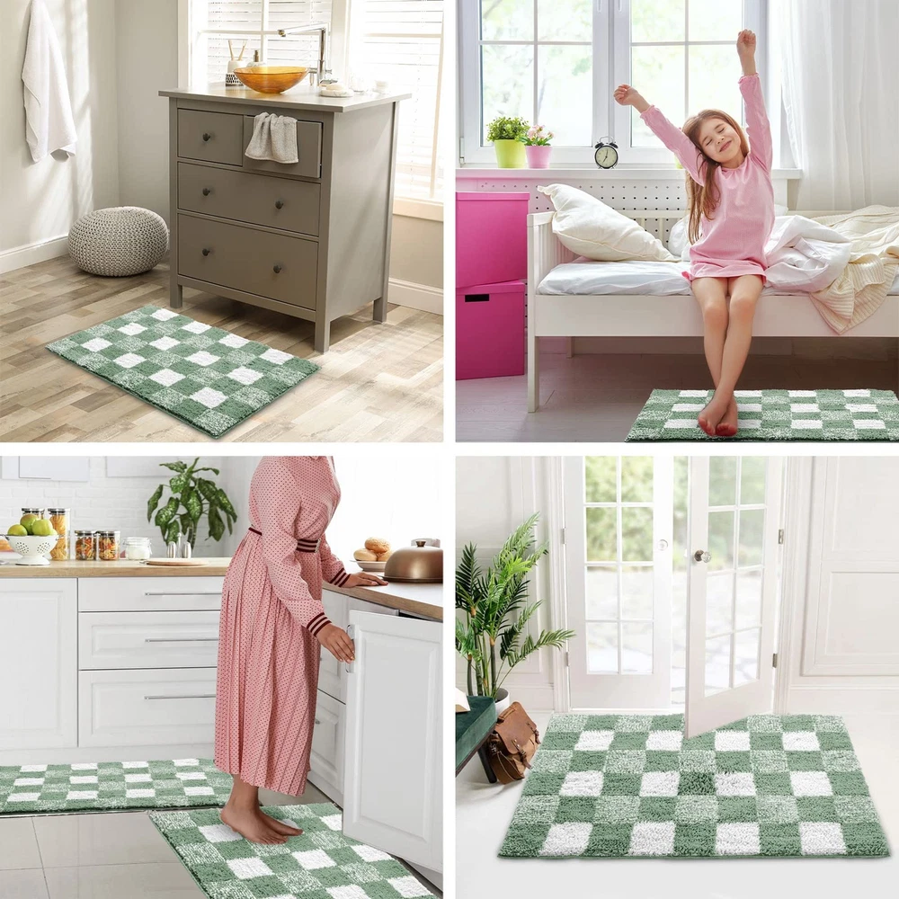Bath mats for Bathroom Non Slip, Fluffy Absorbent Microfiber Bath mat Washable, Aesthetic Bathroom Rugs, Small Sage Green Checkered Bath mat, Sage Green, 24" x 16" 【Unique Checkered Design】The Checkered bath mat chose one of the most iconic American checkered pattern, comes in two colors, with cream white being one of which. During the holiday season plaid and checkered patterns spring up all around you. it remains popular today because of its cheery, bright appearance. The Checkered bath mat brings you a festive atmosphere. 【Ultra-Plush Shaggy Feel】The bathroom rugs are made of 100% premium microfiber which are ultra soft and cozy, the rug is about 0.8 inches thick so your feet can feel silky soft. The plush bath mat is perfect beside your bath, bed, or entranceway, making it easy to keep your whole home comfortable and tidy. 【Super Absorbent】With the extra soft absorbent premium microfiber material, the luxurious shag pile bath rugs can offer a cushy spot to dry off and keeping your room floors dry and clean. 【Safe Non-Slip Design】The upgraded TPE Rubber backing is durable for long lasting use compared with other TPR materials, which ensures that the mat stays perfectly in place, helping to prevent you from falling on slippery bathroom floors. The TPE backing can be recycled to save energy effectively which is strong, sticky, and durable, without the harsh chemicals of PVC. Warning: Do not place mat on wet surface. Make sure floors are dry underneath the rug to prevent the rug from slipping. 【Widely Used】The bathroom rugs come with different colors and sizes creating a look of elegance to complement your decor. Also, it can be widely used as a bath mat, bathtub mat, bathroom rugs, door mats, bedroom rugs, dog bath mats, and foot bath mats. Wide Versatility. This is a multifunctional rug. Put them in living room to sit, in the entry way to keep the dust away from your house. Protect your feet from the cold bathroom floor and place this bathroom mat next to the vanity, guest suite, or next to the tub. The beautifull color and design will be sure to complement and elevate your bathroom decor.Put some play into your pampering, with a fun, checkered pattern and cozy texture. This subtle statement maker balances design with function—creating a quick-dry essential worthy of any bathtime routine. Shipping We offer FREE shipping on all orders! We ship within Three business days of payment, usually sooner. We use a selection of shipping services such as UPS, FedEx, USPS etc. We only ship to the lower 48 states, no APO/FPO addresses or PO Boxes allowed. Local pickups and combined shipping options are not provided at this time. Return You can return a product for up to 30 days from the date you purchased it. Any product you return must be in the same condition you received it and in the original packaging. Please keep the receipt. Payment We accept payment by any of the following methods: PayPal Please pay as soon as possible after winning an auction, as that will allow us to post your item to you sooner! Feedback Customer satisfaction is very important to us. If you have any problem with your order, please contact us and we will do our best to make you satisfied. Contact Us If you have any queries, please contact us via ebay. We usually respond within 24 hours on weekdays. Please visit our eBay store to check out other items for sale! Thank you for shopping at our store.