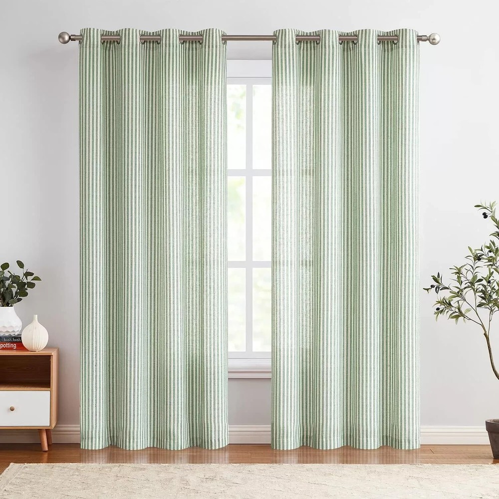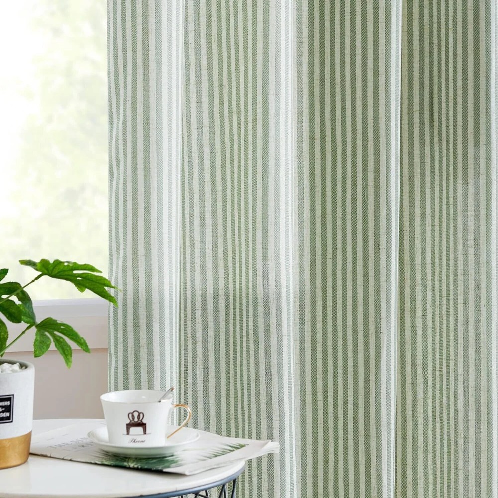 Sage Green Linen Farmhouse Striped Curtains 84 Inch Light Filtering Window Panels