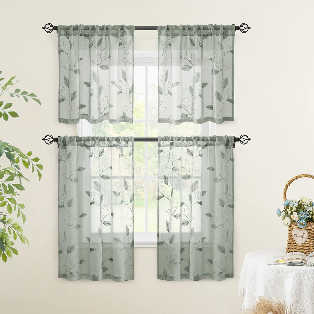 Sage Green Sheer Kitchen Curtains 30 X 36 Inch Length 2 Panels Embroidered Leaf Pattern Short Curtains for Small Window Valance Tiers ★AMAZING SHEER CURTAINS: This floral semi sheer curtain is made of 100% high quality polyester fiber,the fabric is very soft and good touch, but still retains its toughness to prevent tearing easily. The faux linen texture allows beautiful light through while providing privacy, creating a bright and airy effect to the room. ★EXQUISITE WORKMANSHIP: All edges are carefully stitched without uneven hems, we pay attention to every detail of the kitchen curtains, and the 3'' rod pocket makes the panels drape perfectly and beautifully over your windows. ★ELEGANT DESIGN: Pretty embroidered leaves on the sheer curtains creating a refreshing, natural and elegant sense to your room, bringing unique aesthetics to your room and making it the best home decor item! ★WIDE USAGE: These sheer Window Valance are available for different colors and sizes, which suitable for Kitchen, Cafe, Bathroom Windows, Kids Room,Dining Room, Bedroom, Basement, Trailers and RV. ★EASY CARE: Machine wash warm with similar colors. Machine wash gentle. Do not bleach. Tumble dry low. Warm iron if needed. Do not dry clean. Product Description Valance - Valances cover up hardware, curtain rods, and anything else at the top of a window you might want to adorn. - Valances can give a hard-edged look to a room. Valances can broaden, adorn, enhance, and soften any window covering. - Valances are fashionable enough to be used as stand-alone window treatments, and they also work well with window blinds, shades, or drapery for a creative layering effect. - Valances give a natural broadening aspect to your window, offering the appearance of added weight and solidity. They also offer the illusion of increased height to a room. Tier - Tier curtain is great for bathrooms since they provide the privacy required without completely blocking out light. They balance privacy and light flow unlike any other type of curtain. - Tier panels are not typically used in bedrooms since they don’t cover the entire window, but for those who like to wake up with the sun, they work well. - Cafe curtains can make the perfect window coverings for these spaces. They allow in natural light while still providing privacy from your neighbors and passersby so you can focus on work. - For living spaces, cafe curtains are perfect for windows behind furniture, like couches or decorative tables, since they don’t have to be opened and closed daily. Mix & Match - Mix and match tier and valance to get more styles. - The grommet design allows the two to maintain independent functions while easily opening and closing each part separately. Size reference - 30"W x 24"L - 30"W x 36"L Valance Tier Mix & Match Size reference Style Casual Number of Items 2 Pattern Floral Country of Origin China Package Weight 0.15 Kilograms Theme Leaves Opacity Semi-sheer Inches Unit Count 2.0 Count Room Type All Room Product Dimensions 36"L x 30"W Material Polyester Top Style Pocket Model Name 2 Seasons Summer Specific Uses For Product Privacy Included Components Includes 2 leaves Closure Type Rod pocket Curtain Form Valance Item Weight 5.3 ounces Compatible with Rod Size 1.5 Inches Special Feature Window Treatments Hanging Method Rod Pocket Color 1-sage Green Recommended Uses For Product Indoor Fabric Type 100% Polyester Product Care Instructions Machine Wash Size 30"W x 36"L (Pack of 2) 30.0 "w x 36.0 "w. Weight: 5.3 oz Shipping from the USA All of our products are shipped from the USA, ensuring quick delivery to your destination. Payment We offer the following payment methods: PayPal, credit card, bank transfer, and eBay's secure payment system. Free Shipping & Free Returns Shipping within the USA is FREE. Additionally, any return is absolutely free for you. Risk-Free Purchase You have the option to return an item within 30 days without any justification. We cover the return shipping costs! Fast Shipping We ship immediately upon receipt of payment. Generally, the package is delivered within 2-3 days in the USA. If it takes longer, we will contact you. Quality and Costs Made in Europe, USA, China No customs fees or additional charges Total satisfaction guarantee Invoice with declared VAT available upon request in .pdf format Feedback Your feedback is very important to us. After you pay for your purchase, you will automatically receive positive feedback from us.