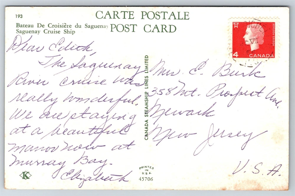 Saguenay Cruise Ship River Trip Murray Bay Can C1950s Postcard Y19 Thank you for visiting! This is a standard size postcard, 3.5" X 5.5". In stock, usually ships within 24 hours of your purchase. Please ask questions if you are unsure about anything. Our goal is for your complete satisfaction with the postcard and your experience. Check all my other listings in my store. RETIREDWITHBOOKS Powered by SixBit's eCommerce Solution