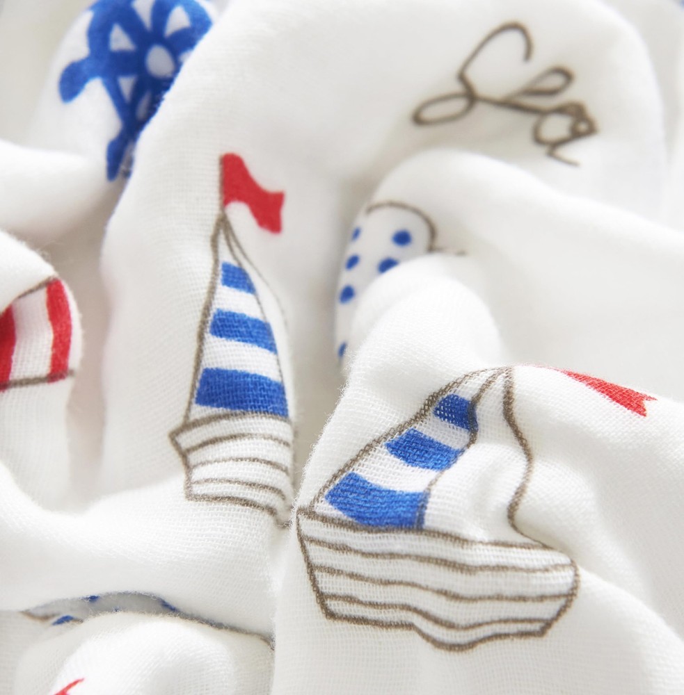 Sailboat Sea Adventure Muslin Blanket Reversible 100% Cotton 6 Layer Quilt Be...