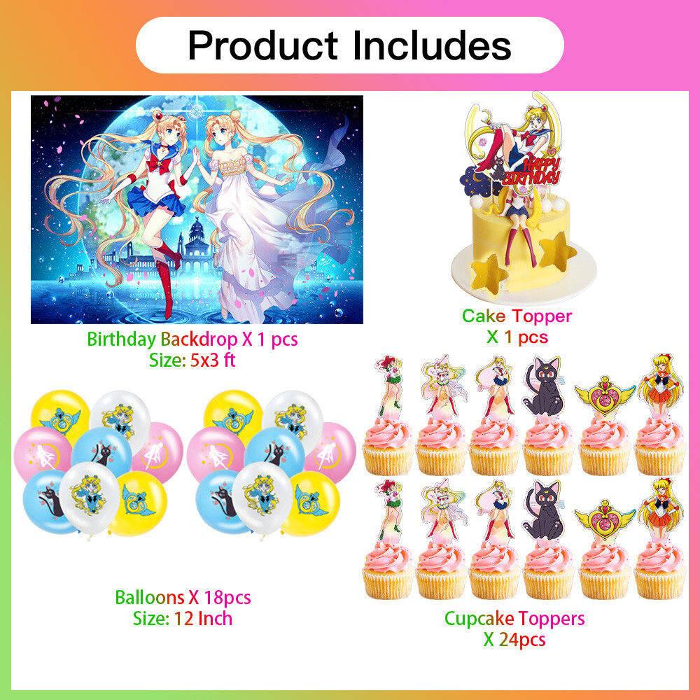 About this item 【Themed Sets of Matching Units】: ☰ Take this good favor for themed party to impress your kids and their friends. ☰ Enrich your kids’childhood dream well,giving them a fantastic surprise. 【Party Decor Is So Easy】: ☰ It contains all of your Sailor Moon birthday party tableware needs and is completely disposable. ☰ You can save more time to enjoy this party with your guests. 【Real Savings For You】 ☰ The shiny large backdrop decor will attract you eyes and make everyone laugh.The banner cloth is printed in high definition, making it the perfect party background wall. It is made of thick cloth, not paper. ☰ You will save over 70% compared to buying 2 Sailor Moon party supplies separately. 【Super Value Sailor Moon Package】: ✪ 1PCS X Large Happy Birthday Banner 5x3ft(150x100cm) ✪ 16PCS Balloons. ✪ 1PCS X Cake Topper. ✪ 12PCS X Cupcake Toppers. 【After Sale Service】: ☰ We try our best to bring the best use experience to our customers. ☰ If you are not satisfied with the purchase of this set or have any questions about the product,please contact us at any time.We will definitely solve the problem for you in the first time. ☰ We can also custom backdrop other size or pictures you want. Any questions please contact us. On Aug 1, 2025 at 04:58:42 PDT, seller added the following information: