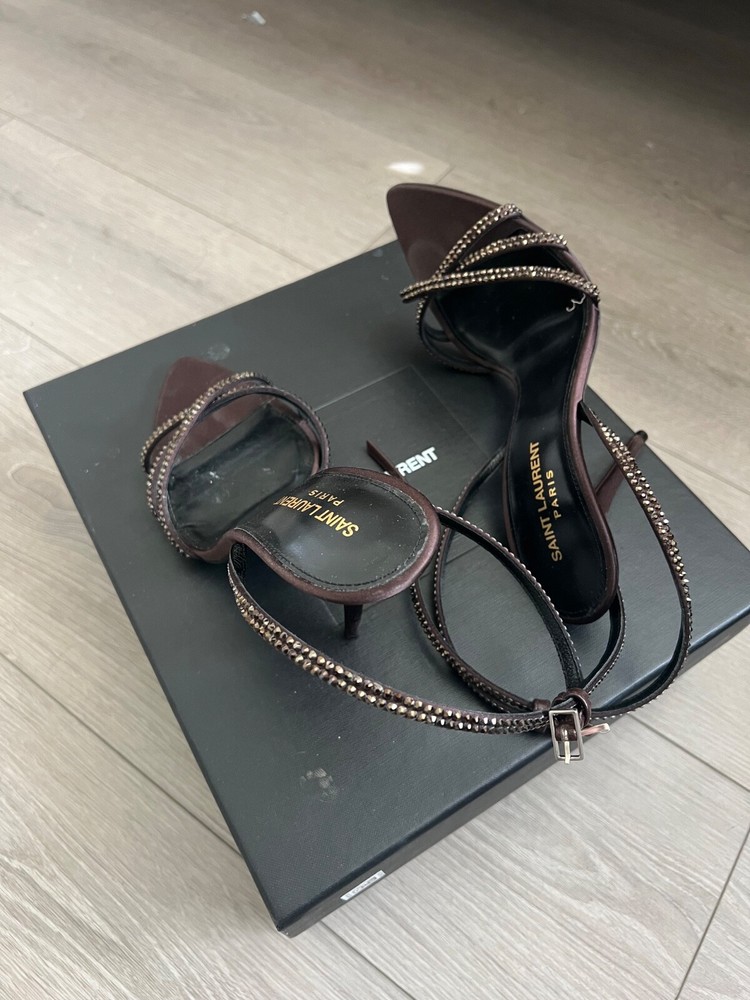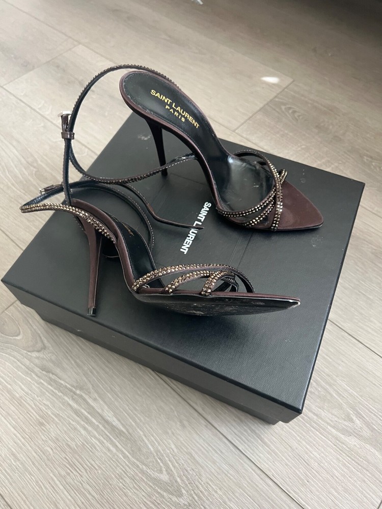 These heels are absolutely stunning! The fit is perfect for my size 6.5 feet, and the rich brown color pairs beautifully with everything. The open toe adds a sexy yet classy touch, making them ideal for both work and nights out. Saint Laurent never disappoints—these pumps feel luxurious, look expensive, and get endless compliments. Worth every penny!