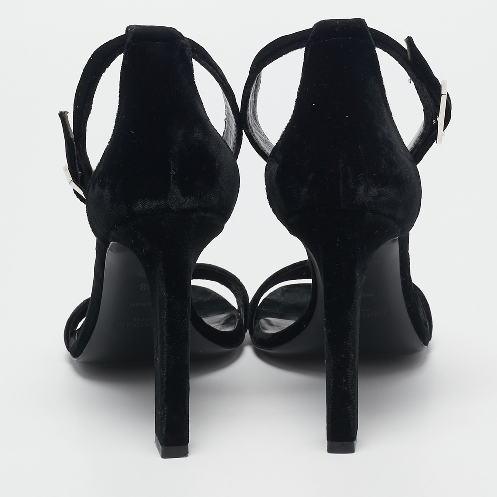 Timeless and elegant, Saint Laurent’s Grace sandals are crafted from sumptuous black velvet with a sleek, minimalist design. Featuring an adjustable ankle strap and slender stiletto heel, they’re ideal for sophisticated evenings.Certified by The Luxury Closet - This item has gone through a detailed authentication process overseen by our experts. We offer a lifetime guarantee of authenticity on all our items. Import duties, taxes and charges are not included in the item price. These charges are the buyers responsibility. Please check with your country’s customs office to determine what these additional cost will be prior to buying. Our eBay Store About Us Contact Us Add to Favorite Sellers Saint Laurent Black Velvet Grace Sandals Size 38 $409.2 Timeless and elegant, Saint Laurent’s Grace sandals are crafted from sumptuous black velvet with a sleek, minimalist design. Featuring an adjustable ankle strap and slender stiletto heel, they’re ideal for sophisticated evenings. Product Details Brand Color Black Dimensions Material Velvet Size 38 Outsole Width 8.5 cm Outsole Length 22 cm Heel Height 11 cm Includes The Luxury Closet Packaging Certified by The Luxury Closet This item has gone through a detailed authentication process overseen by our experts. We offer a lifetime guarantee of authenticity on all our items. How We Check The in-house team of experts at The Luxury Closet is highly trained to verify the authenticity and the condition of the luxury products. They ensure that only 100% authentic items are put on sale.The evaluation process is unique with its own mix of assessment criteria and differs according to the category. Each item is evaluated based on the following combination of hallmarks, hardware, stitching, symmetry, material, craftsmanship, stamping, codes, hologram stickers, and packaging. Our authenticators also check if the items have been modified or amended (e.g., aftermarket diamonds, replaced batteries, repaired bags, etc.) International Buyers Import duties, taxes and charges are not included in the item price. These charges are the buyers responsibility. Please check with your country’s customs office to determine what these additional cost will be prior to buying.