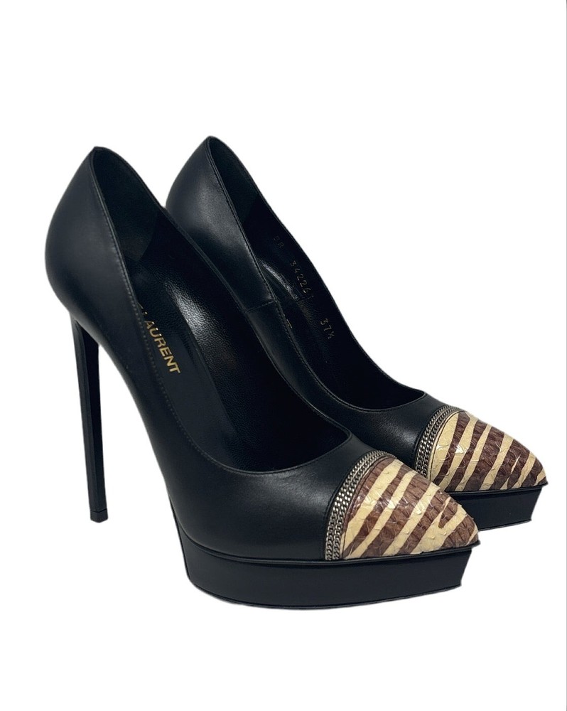 Size: 37.5 Material: Leather Condition: Pre-Loved Color: Black, Tan, Brown, All sales final