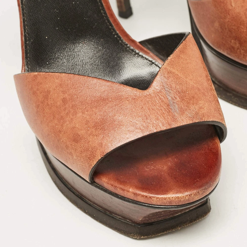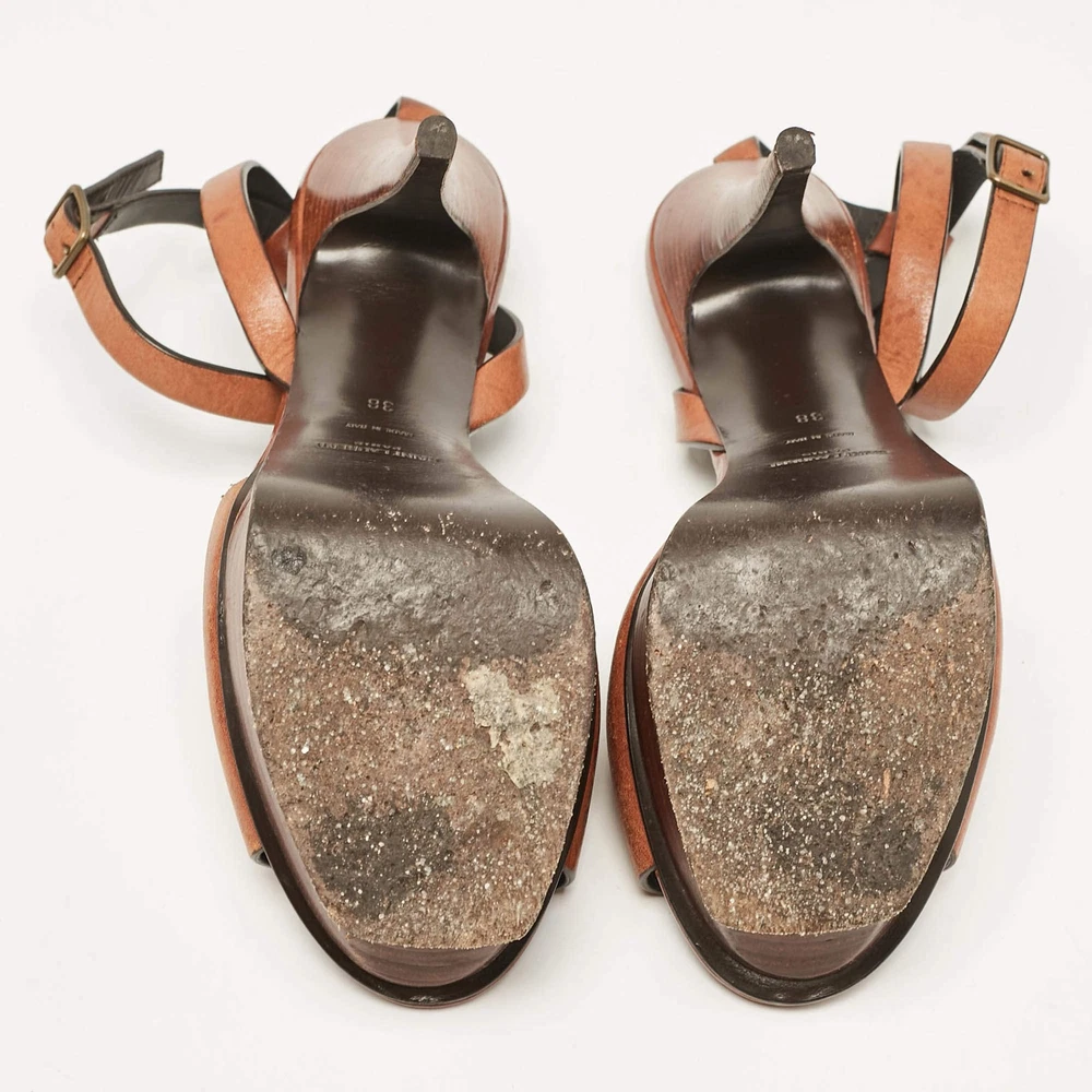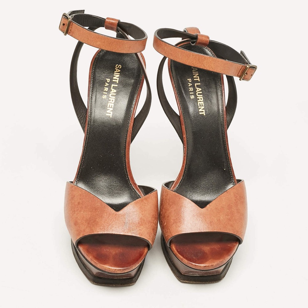 Our eBay Store About Us Contact Us Add to Favorite Sellers Saint Laurent Brown Leather Ankle Strap Sandals Size 38 Crafted from luxurious brown leather, these Saint Laurent sandals feature a delicate ankle strap and a minimalist design. The block heel provides added comfort and stability, making them perfect for both casual and dressy occasions Product Details Brand Saint Laurent Paris Color Brown Includes Original Dustbag Outsole Length 24 cm Outsole Width 9 cm Size 38 Certified by The Luxury Closet This item has gone through a detailed authentication process overseen by our experts. We offer a lifetime guarantee of authenticity on all our items. How We Check The in-house team of experts at The Luxury Closet is highly trained to verify the authenticity and the condition of the luxury products. They ensure that only 100% authentic items are put on sale.The evaluation process is unique with its own mix of assessment criteria and differs according to the category. Each item is evaluated based on the following combination of hallmarks, hardware, stitching, symmetry, material, craftsmanship, stamping, codes, hologram stickers, and packaging. Our authenticators also check if the items have been modified or amended (e.g., aftermarket diamonds, replaced batteries, repaired bags, etc.) International Buyers Import duties, taxes and charges are not included in the item price. These charges are the buyers responsibility. Please check with your country’s customs office to determine what these additional cost will be prior to buying.