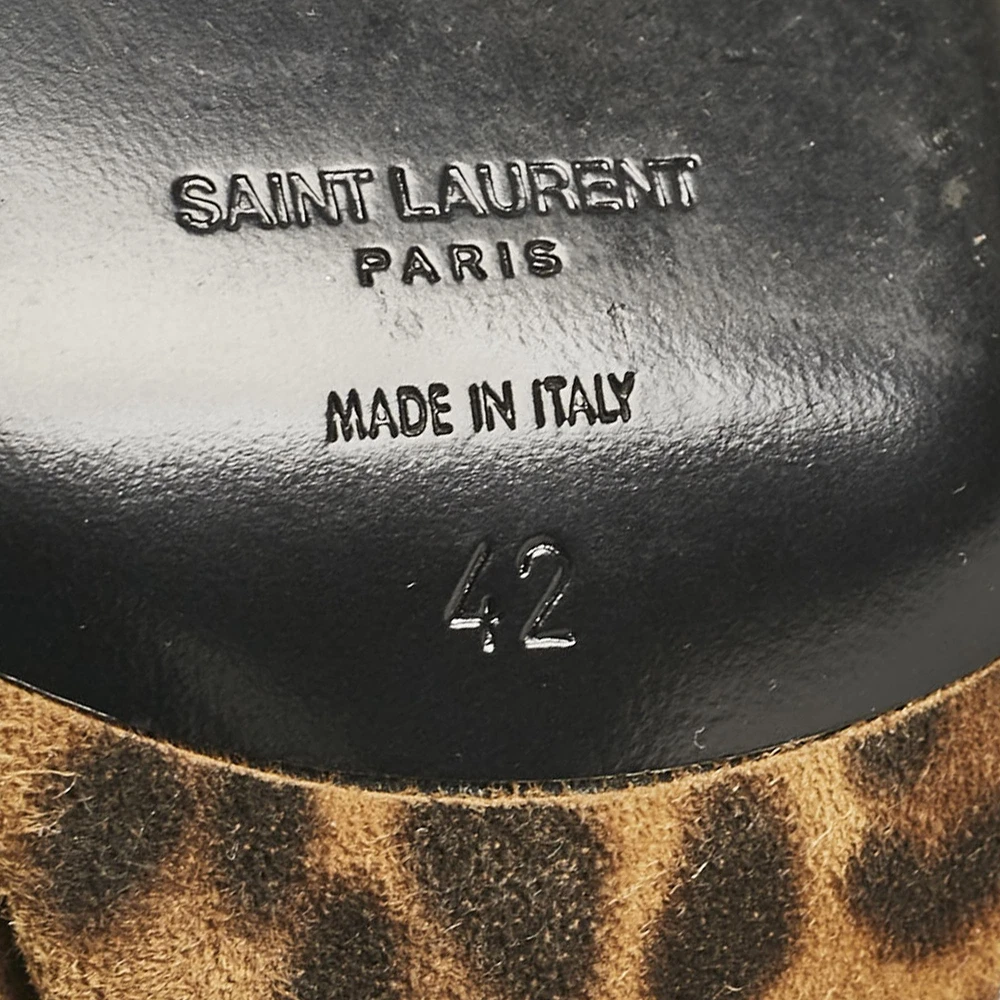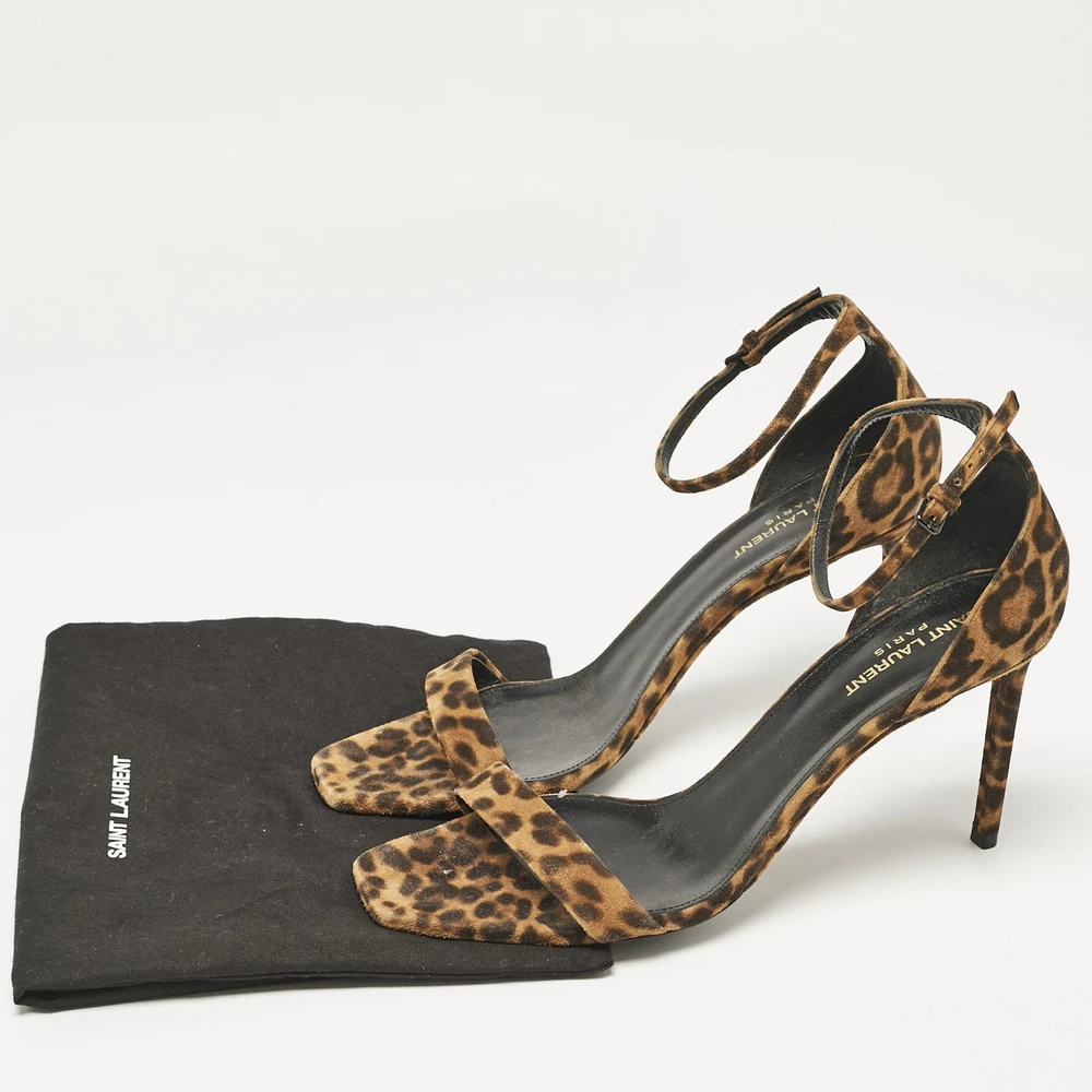 A pair of animal printed heels is a must have in any shoe collection. These Saint Laurent brown sandals in leopard print suede with slim ankle straps and stiletto heels are a great investment. They look great on the feetCertified by The Luxury Closet - This item has gone through a detailed authentication process overseen by our experts. We offer a lifetime guarantee of authenticity on all our items. Import duties, taxes and charges are not included in the item price. These charges are the buyers responsibility. Please check with your country’s customs office to determine what these additional cost will be prior to buying. Our eBay Store About Us Contact Us Add to Favorite Sellers Saint Laurent Brown Leopard Print Suede Ankle Strap Sandals Size 42 $212.3 A pair of animal printed heels is a must have in any shoe collection. These Saint Laurent brown sandals in leopard print suede with slim ankle straps and stiletto heels are a great investment. They look great on the feet Product Details Brand Color Brown Dimensions Material Suede Size 42 Outsole Width 9 cm Outsole Length 26 cm Heel Height 9.5 cm Includes Original Dustbag Certified by The Luxury Closet This item has gone through a detailed authentication process overseen by our experts. We offer a lifetime guarantee of authenticity on all our items. How We Check The in-house team of experts at The Luxury Closet is highly trained to verify the authenticity and the condition of the luxury products. They ensure that only 100% authentic items are put on sale.The evaluation process is unique with its own mix of assessment criteria and differs according to the category. Each item is evaluated based on the following combination of hallmarks, hardware, stitching, symmetry, material, craftsmanship, stamping, codes, hologram stickers, and packaging. Our authenticators also check if the items have been modified or amended (e.g., aftermarket diamonds, replaced batteries, repaired bags, etc.) International Buyers Import duties, taxes and charges are not included in the item price. These charges are the buyers responsibility. Please check with your country’s customs office to determine what these additional cost will be prior to buying.