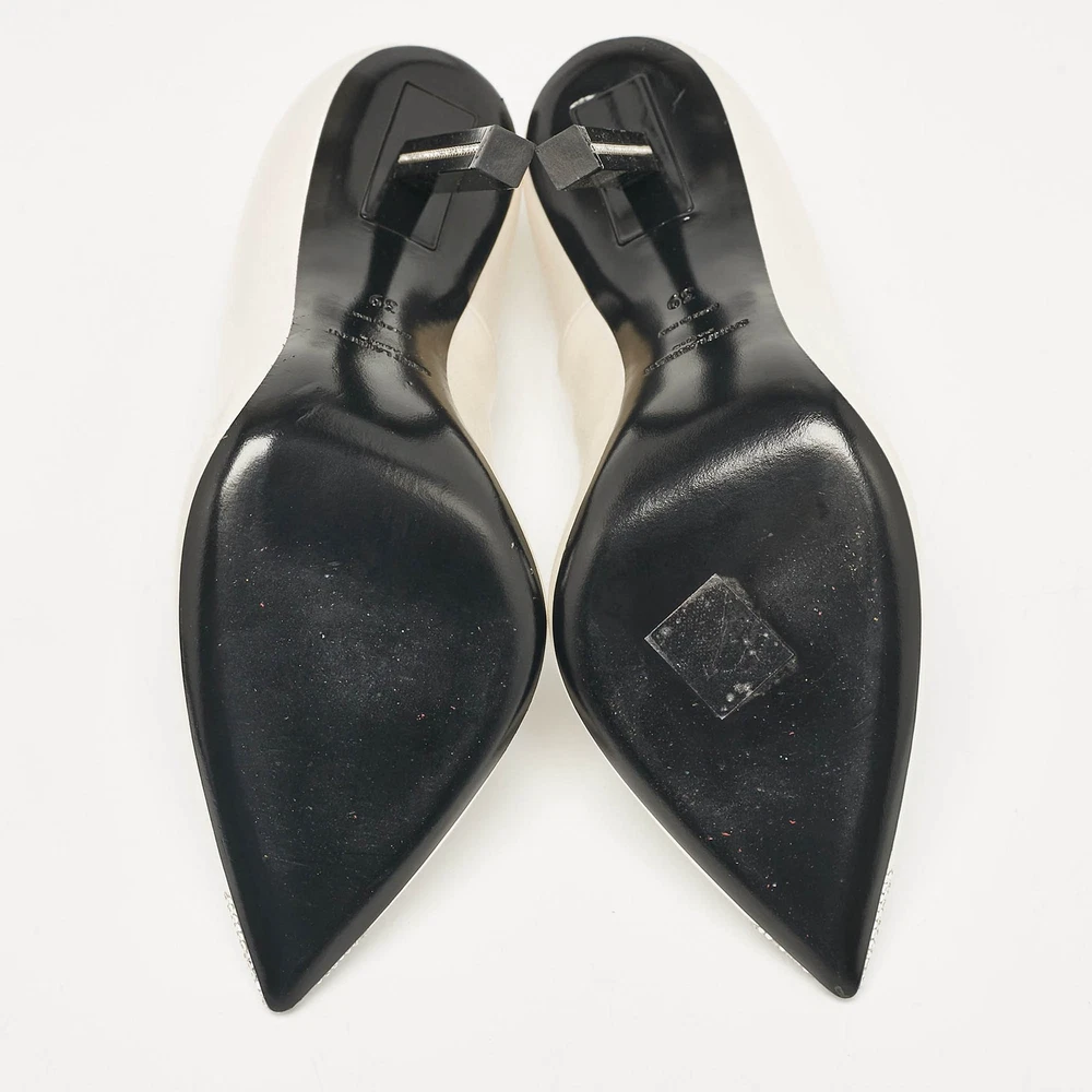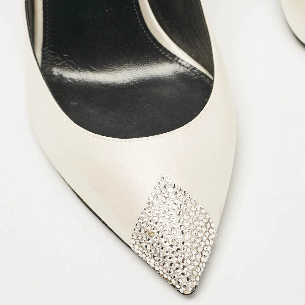 Saint Laurent Grey Satin Crystal Embellished Pointed Toe Pumps Size 39 EU