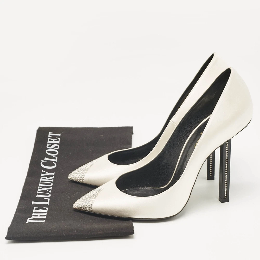 Wonderfully crafted shoes added with notable elements to fit well and pair perfectly with all your plans. Make these designer pumps yours todayCertified by The Luxury Closet - This item has gone through a detailed authentication process overseen by our experts. We offer a lifetime guarantee of authenticity on all our items. Import duties, taxes and charges are not included in the item price. These charges are the buyers responsibility. Please check with your country’s customs office to determine what these additional cost will be prior to buying. Our eBay Store About Us Contact Us Add to Favorite Sellers Saint Laurent Grey Satin Crystal Embellished Pointed Toe Pumps Size 39 $678.7 Wonderfully crafted shoes added with notable elements to fit well and pair perfectly with all your plans. Make these designer pumps yours today Product Details Brand Color Grey Dimensions Material Satin Size 39 Outsole Width Outsole Length Heel Height Includes The Luxury Closet Packaging Certified by The Luxury Closet This item has gone through a detailed authentication process overseen by our experts. We offer a lifetime guarantee of authenticity on all our items. How We Check The in-house team of experts at The Luxury Closet is highly trained to verify the authenticity and the condition of the luxury products. They ensure that only 100% authentic items are put on sale.The evaluation process is unique with its own mix of assessment criteria and differs according to the category. Each item is evaluated based on the following combination of hallmarks, hardware, stitching, symmetry, material, craftsmanship, stamping, codes, hologram stickers, and packaging. Our authenticators also check if the items have been modified or amended (e.g., aftermarket diamonds, replaced batteries, repaired bags, etc.) International Buyers Import duties, taxes and charges are not included in the item price. These charges are the buyers responsibility. Please check with your country’s customs office to determine what these additional cost will be prior to buying.
