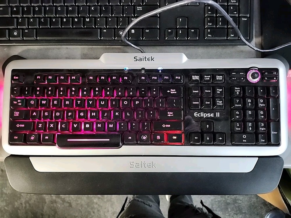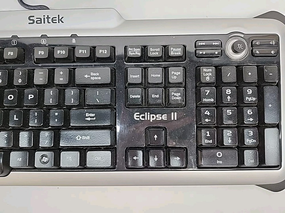 Saitek Eclipse Backlit Gaming Keyboard w/ Wrist Rest USB KU-0603 - TESTED READ! LED inside right side of keyboard may be out or very dim, see pictures. Item is tested and in good working condition. Please refer to pictures for all questions regarding the condition of the item. If you do not see something in the pictures, it is most likely not included unless otherwise stated. Item is sold as is. Terms of Sale If there are any problems or comments, we look forward to hearing from you and will respond to any inquiries within 48 hours. We want you to be completely satisfied with your purchase and want to make things right! We accept returns within 30 days of delivery, however the buyer will be responsible for a 20% restocking fee. Buyer is responsible for return shipping costs! Please contact us before returning! Items are only shipped after payment is received! Be sure to double check your address when placing the order! Shipping Information We accept PayPal as it is the safest and easiest for buyers. Please pay within 48 hours of purchase. If item is not paid for after 5 days, it will be relisted. Delivery date will be according to the USPS or Fedex tracking system. We appreciate your interest! Thanks for looking and we hope you have a good day!