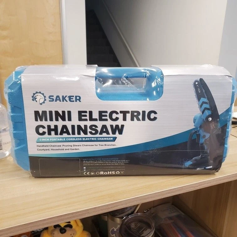 Saker Mini Chainsaw, 6 Inch Portable Electric Chainsaw Cordless, Small Handheld Chain saw for Tree Branches, Courtyard, Household and Garden, By 2PCS 20V 1500mAh Batteries, Extra 2 PCS Chain Model SK1806D Chainsaw speed 780r/min Guido plate length 185mm/7inch