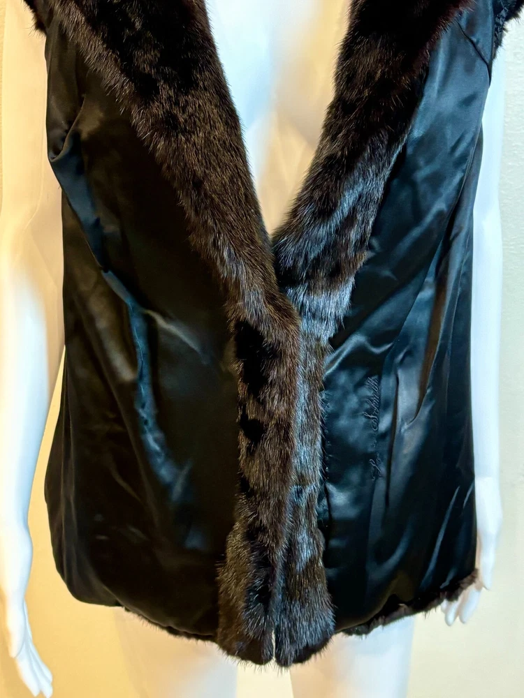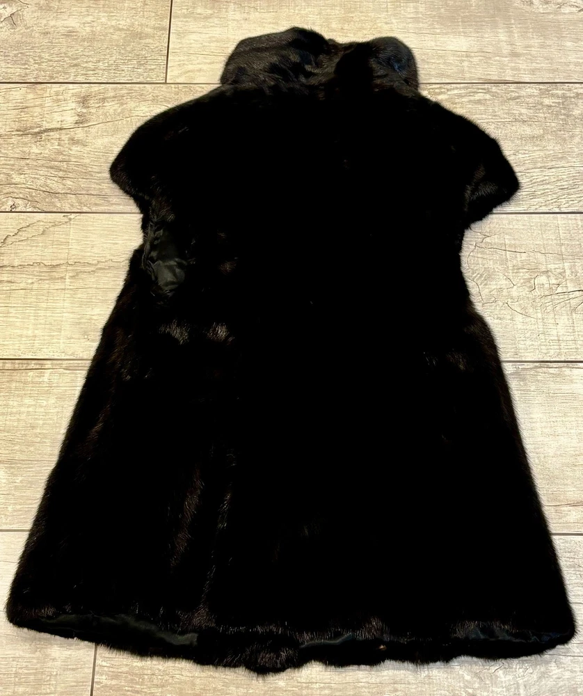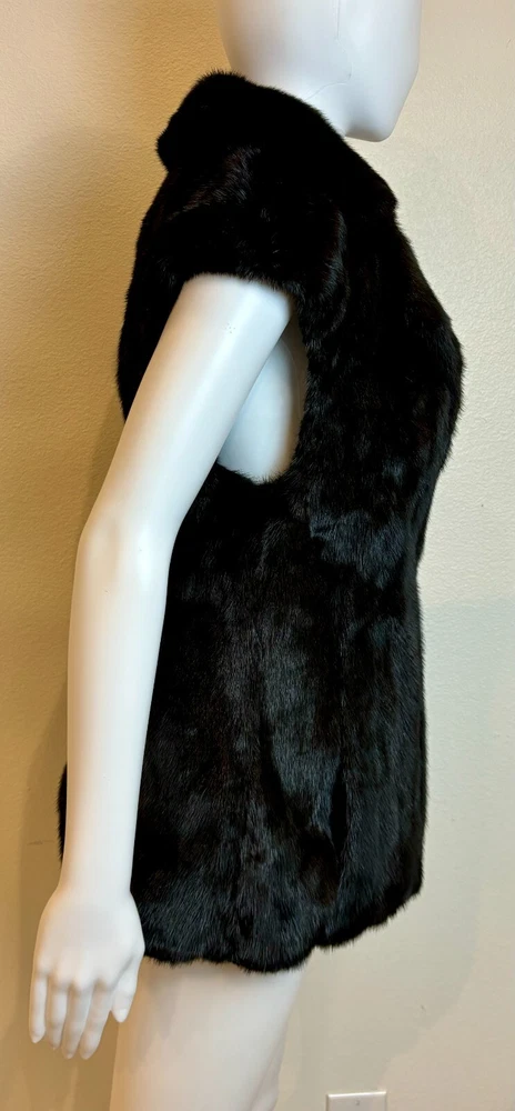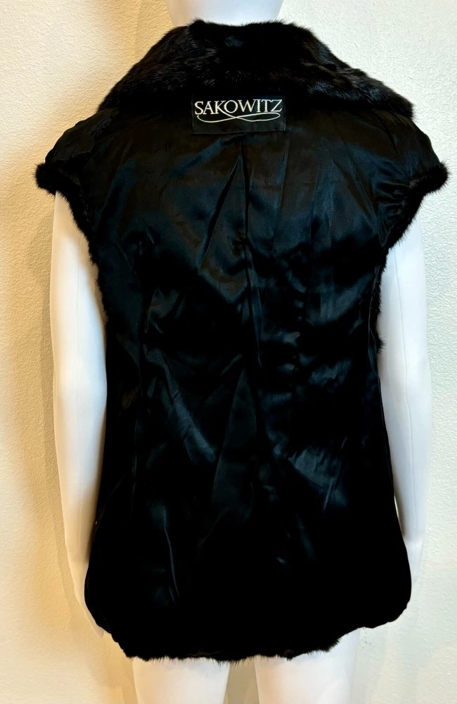 Sakowitz Black Mink Vest from Sakowitz Furs in Houston, TX. There is no size, so I am going off of measurements completely. PLEASE CHECK MEASUREMENTS BEFORE PURCHASING . The vest has 2 pockets and is closed by a hook and loop. This is 100% mink fur and is in excellent pre-owned condition. There are no rips, tears, holes or stains and the fur is beautiful! This is such a beautiful vest and would make a great addition to any wardrobe. Please see photos for measurements and condition. Chest: 32 In Waist: 38 in Hem Line: 42 in Length: 27 in This is a previously owned and used item. It may have signs of wear and previous use. We offer combined shipping to help save you some money!! Simply reach out to me to apply discount PLEASE NOTE: All measurements are approximate and taken with garment laid flat. Please look closely at pictures for measurements before purchasing. If you're not sure about the size, lay flat a similar item of your own and measure that item to compare with our measurements and feel free to message us with any questions. Colors may differ slightly in shade from photos to actual item due to variances caused by photography lighting and monitors. We greatly appreciate your business! Please remember to leave positive feedback if you are happy with your purchase! Thanks for looking!
