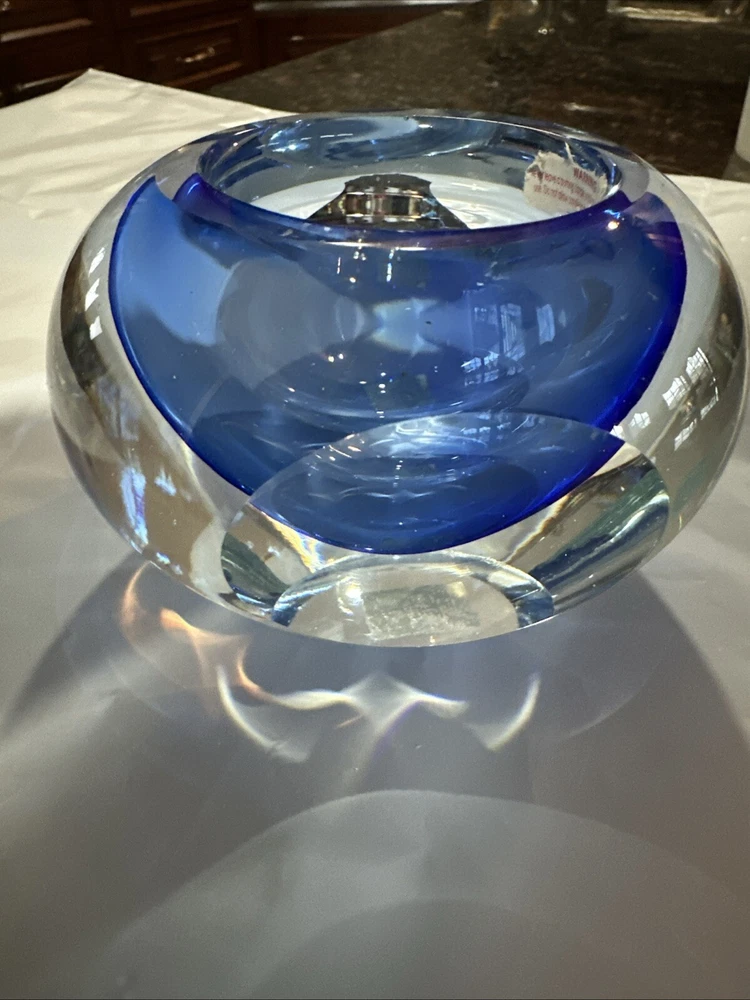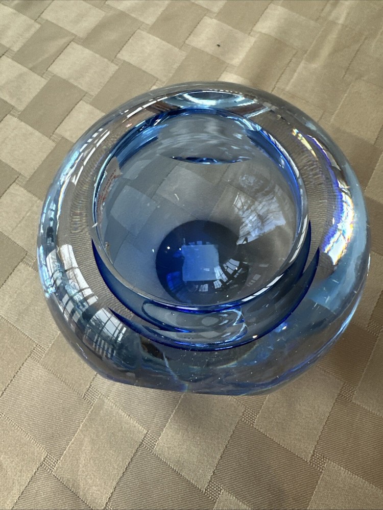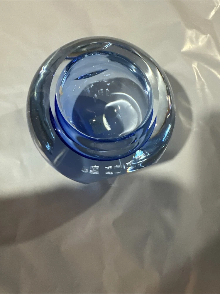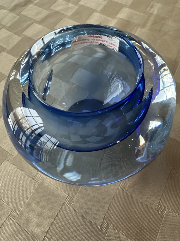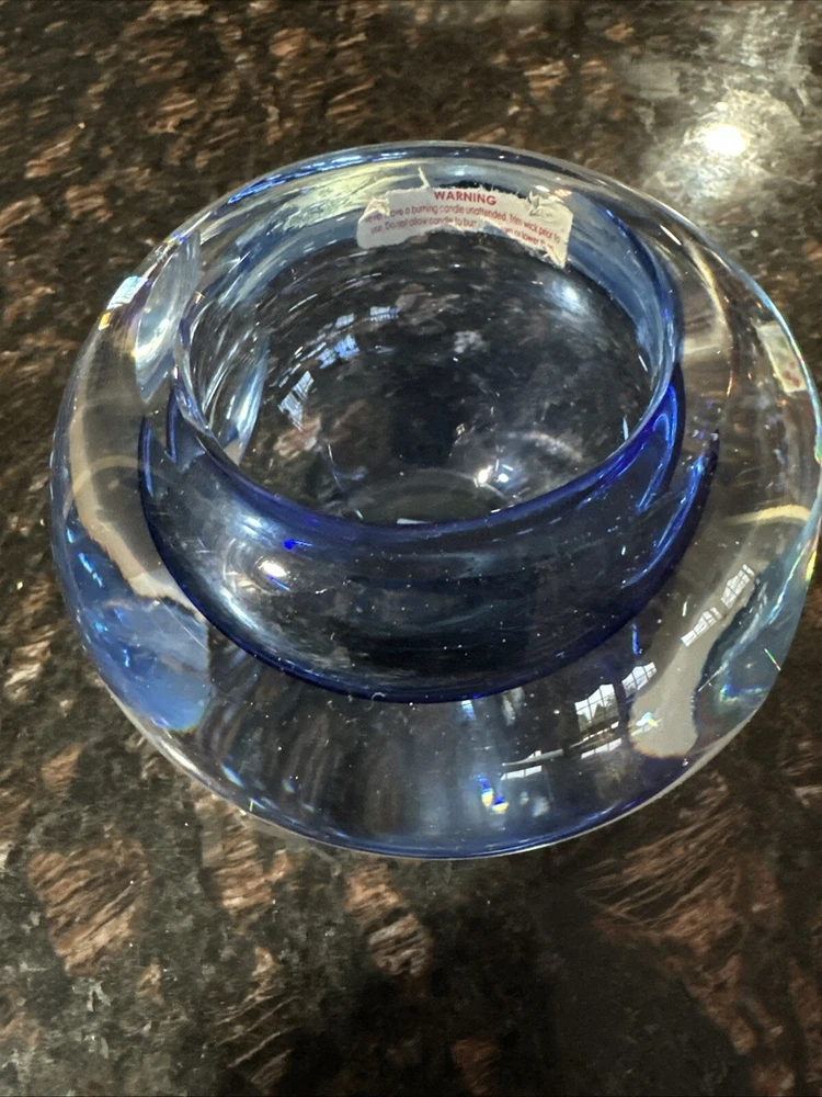 Beautiful blue crystal votive candle holder, excellent condition, this wasn’t actually used, just for display.