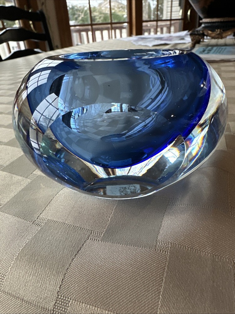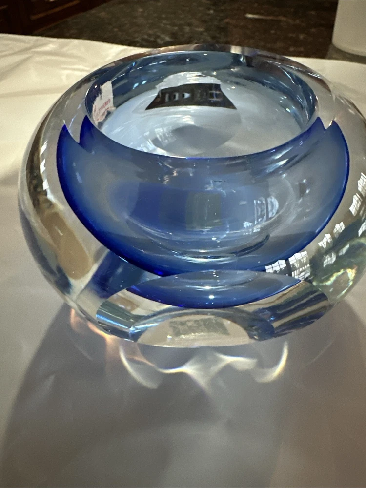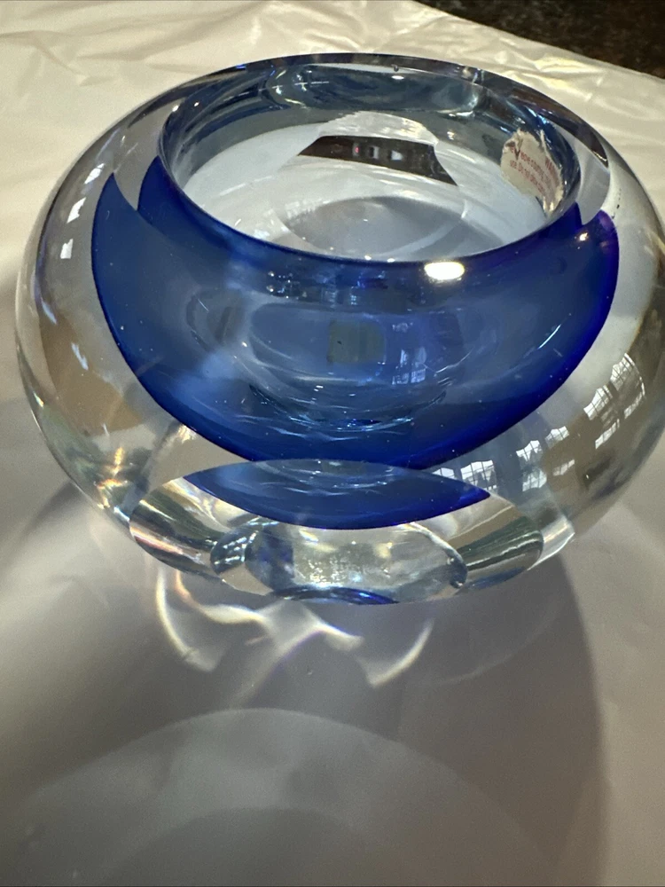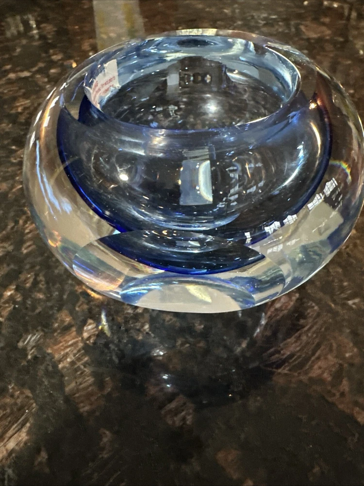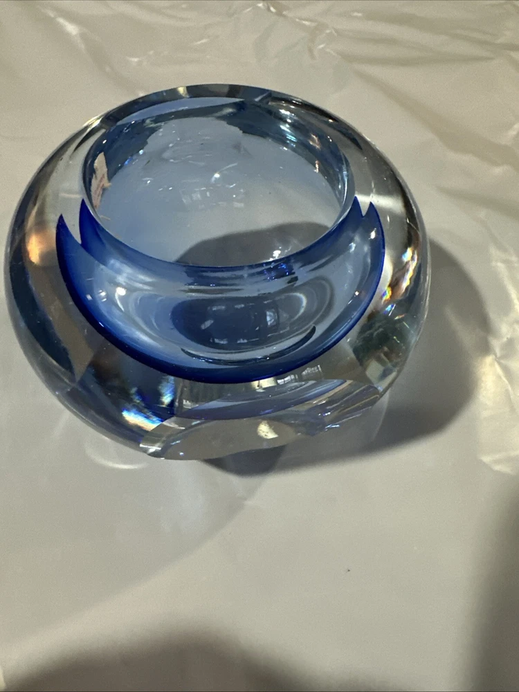 Beautiful blue crystal votive candle holder, excellent condition, this wasn’t actually used, just for display.
