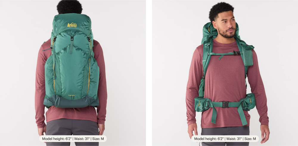 MY WAREHOUSE IS LOCATED IN THE US, SO YOUR ORDER WILL BE SHIPPED FROM WITHIN THE US - YOU WON'T HAVE TO PAY ANY CUSTOMS OR IMPORT FEES. Sale 40% REI Co-op Flash 55 Pack - Men's - 100% Authentic - NEW Features Recycled ripstop nylon shell fabric offers excellent durability in this lightweight pack that's built for the long haul Durable water repellent (DWR) made without PFAS helps moisture bead up on the surface Adjustable torso provides a fine-tuned fit 3D contoured hipbelt and ventilated back panel are comfortable all day with loads up to 35 lbs. Roll-top lid provides weather resistance and allows compression and adjustment of internal volume Lid is also removable and forms a simple waist pack using top lid cinch straps—or it can also be left at home to reduce weight For a tight load and good balance, included Packmod compression straps can be run from any loop to any other loop, so you can sculpt your pack to the shape of your load Included Packmod pockets on the shoulder straps and hipbelt are great for your phone or snacks—or you can take them off altogether to reduce pack weight Also compatible with Packmod Hipbelt Extender, Packmod Rainshield Pocket and Packmod Mesh Pocket (accessories not included) Water bottle pockets are positioned forward on the hipbelt so you don't have to remove the pack to grab your drink; snap closures keep a good grip on slim water bottles Internal sleeve can accommodate up to a 3-liter hydration reservoir (not included); tube can be routed over either shoulder Exterior side pockets are great for storing light items that you want to keep handy Large front pocket is great for a rain shell or other gear you may need to access quickly Attachment loops and removable tool keeper allow trekking poles, ice axes and more to be lashed on, expanding your carrying ability while keeping the load stable Daisy chain with multiple attachment points allows for tailoring exterior loads REI Co-op brand is certified to The Climate Label; we actively fund efforts to reduce carbon emissions across our business and support climate projects around the world
