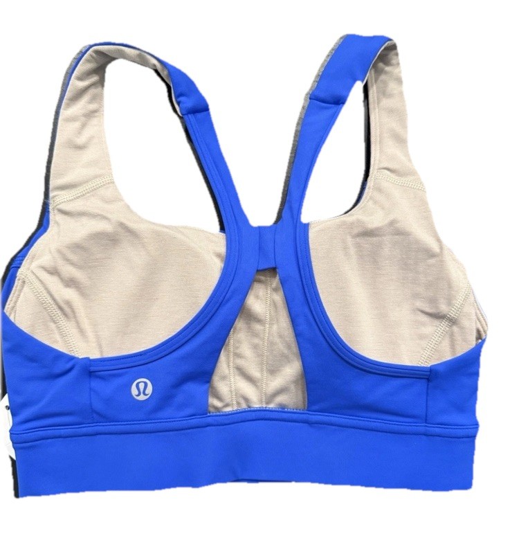 Lululemon Women's Power Through Sports Bra Blue BLBT Size 10 NWT retail 58$ PLEASE CHECK MY CLOSET FOR OTHER NEW AND PRELOVED LULULEMON ITEMS TO PURCHASE MULTIPLE MESSAGE ME FOR AN INVOICE OR I CAN COMBINE IN A SEPARATE LISTING FOR EXTRA DISCOUNTS AND BUNDLED S/H! This medium-support bra has wide straps and a back keyhole to give you the support and ventilation you need whether you're lifting barbells or doing burpees. luxtreme® Is sweat-wicking, four-way stretch, and engineered not to shrink features Designed for: Yoga Lycra®: Added Lycra® fibre for shape retention Coverage: Pockets for optional, removable cups Medium support: Intended to provide medium support for a B/C cup