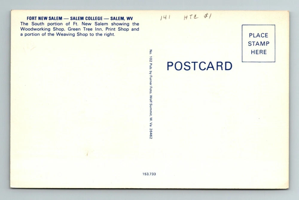 Salem WV-West Virginia, Fort New Salem, Salem College, Vintage Postcard