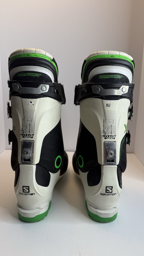Salomon X Pro 120 Ski Boots — high-performance alpine boots for advanced skiers. Size 28.0 / 28.5 (326 mm boot sole length). Features My Custom Fit 3D Race liner, Custom Shell design for personalized fit, and Oversized Pivot for maximum power transfer. Condition: ✅ Good used condition — minor scuffs and cosmetic wear from normal use (see photos). ✅ Soles and buckles in great shape, all straps and clips fully functional. ✅ Clean interior, no odor. ✅ Flex 120 — responsive and stable performance. Made in Romania. Sold as is, ready for the slopes!