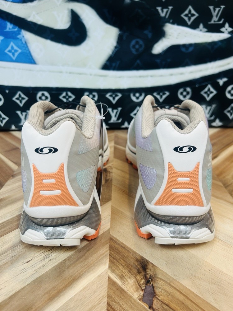Elevate your sneaker game with these limited edition Salomon XT-4 OG Aurora Borealis Shortbread Orange Silver Grey sneakers. These shoes feature a lace-up closure and a low-top shaft style, making them perfect for cross training and CrossFit activities. The cushioned and breathable features of these sneakers ensure maximum comfort, while the rubber outsole provides excellent traction. These Salomon XT-4 sneakers come in a stunning multicolor design, with a solid pattern that is perfect for the nature-inspired theme of the shoe. The synthetic upper material and standard shoe width make these shoes a perfect fit for men's US size 13 and UK size 12.5. The sneakers are part of the Salomon XT product line and are manufactured in China. Get your hands on these rare and sold-out sneakers, and add a touch of the classic and '90s vibe to your shoe collection.