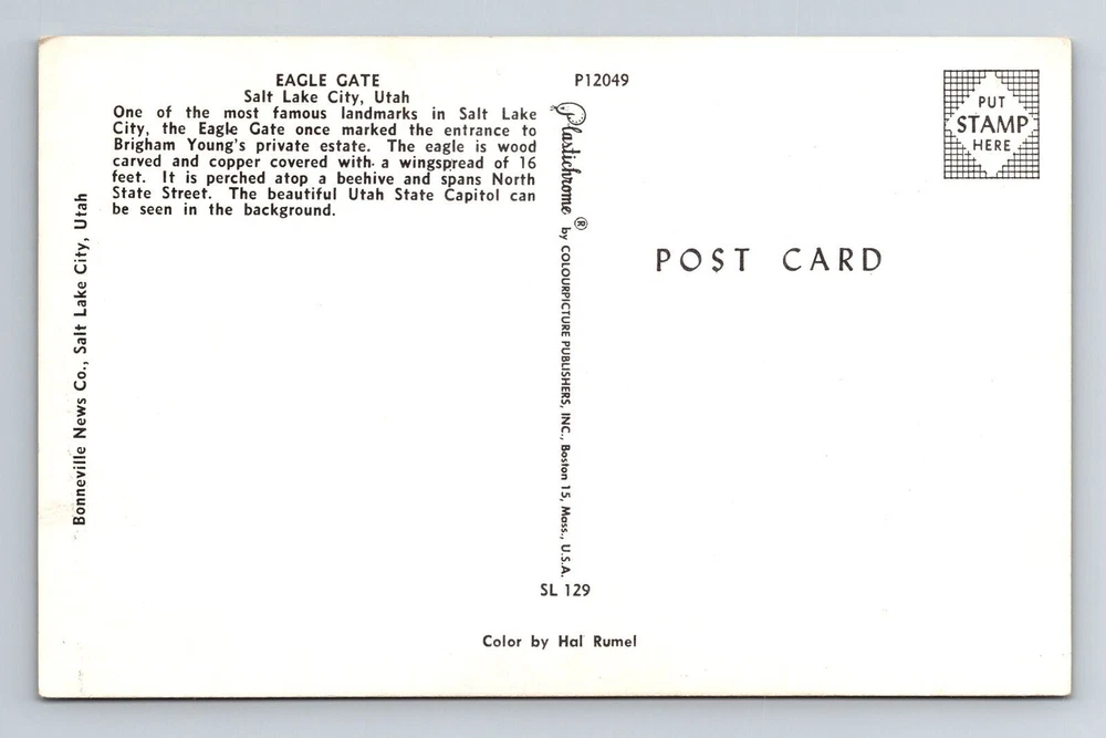 Salt Lake City UT-Utah, Eagle Gate, Scenic Landmarks, Vintage Postcard