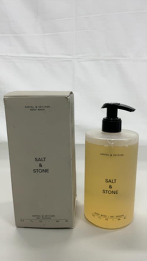 New 15.2 fl oz. Scent: Santal and Vetiver POWERFUL, YET GENTLE BODY CLEANSER - SALT and STONE Antioxidant Body Wash is a powerful, yet gentle hydrating gel cleanser infused with antioxidant-rich botanical extracts + niacinamide. Leaves skin clean with a silky-smooth finish without dehydrating. Listing and template services provided by inkFrog