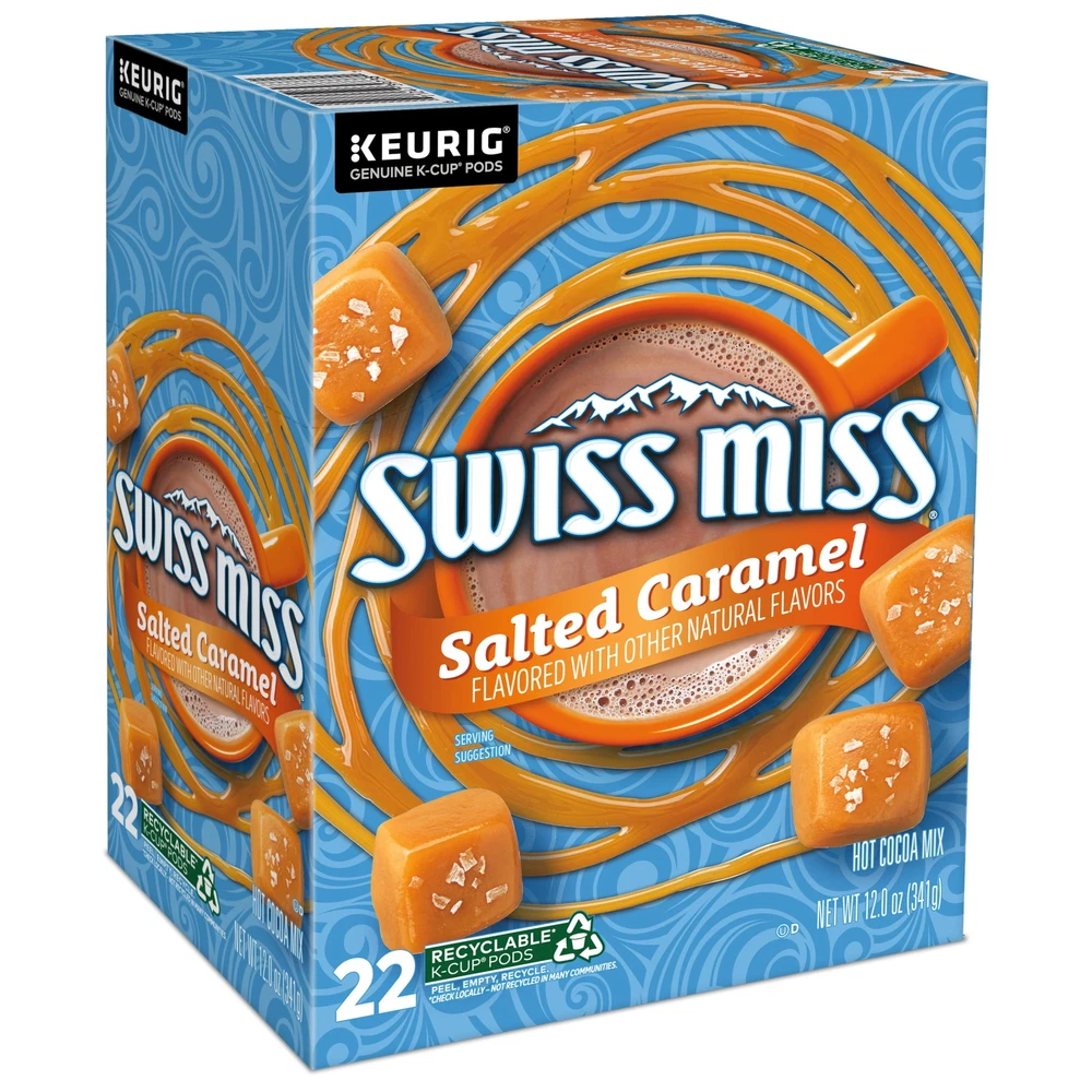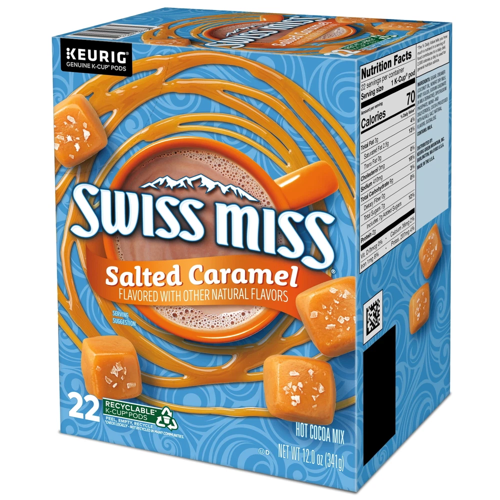 Nothing beats a cup of the delicious tasting Swiss Miss® Salted Caramel warm hot cocoa on a cold winter night! Now you can enjoy the sweet taste of chocolaty cocoa and smooth caramel flavor whenever you’re in the mood for a simple yet delicious treat that adds warmth to any moment. Create a cozy new family tradition or simply enjoy a quiet moment alone when you wrap your hands around a warm mug of Swiss Miss Salted Caramel Hot Cocoa. Swiss Miss has been creating the taste of hot chocolate since 1961 in a real dairy in Menomonie, Wisconsin. Made with dried milk and premium imported cocoa, each K-Cup® pod holds the perfect amount of Swiss Miss® Salted Caramel Hot Cocoa, creating a rich indulgent taste to sip and savor any time of day. Compatible with all Keurig Single Serve K-Cup® Pod Coffee Makers, Swiss Miss Salted Caramel Hot Cocoa is now easier to enjoy than ever before. RECYCLABLE* K-CUP® PODS: Simple. Delicious. And Recyclable. Enjoy the same great-tasting coffee you know and love, and when you’re done just peel, empty and recycle. *Check locally, not recycled in all communities. Packaging may vary. HOT COCOA: Now you can enjoy the sweet taste of cocoa whenever you’re in the mood for a simple let deliciously chocolaty treat that adds warmth to any moment TASTE OF REAL: Swiss Miss® Milk Hot Cocoa is made with premium imported cocoa and dried milk TRADITIONAL TREAT: Create a cozy new family tradition or continue an existing one when you wrap your hands around a warm mug of Swiss Miss® Salted Caramel Hot Cocoa ONE TOUCH: Swiss Miss® Hot Cocoa is compatible with all Keurig Single Serve K-Cup Pod Coffee Makers