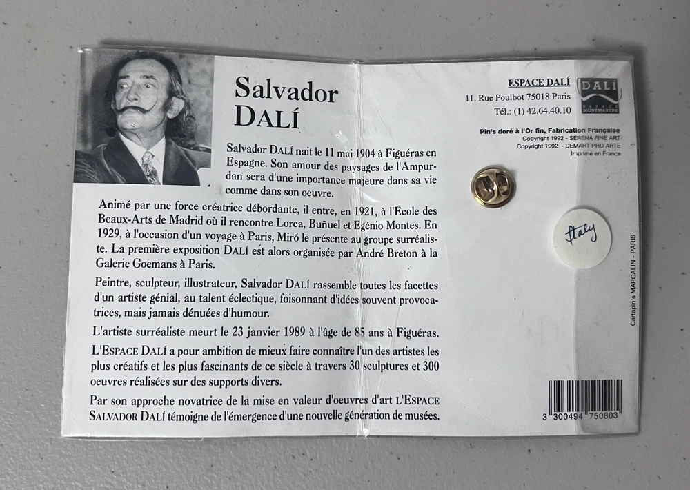 Salvador Dali Persistence of Memory Pin Back Lapel Pin Brand New & Rare. Unused & never taken out of plastic. Arrives exactly as shown. Quick & easy transaction. Shipped with care. Enjoy 😎