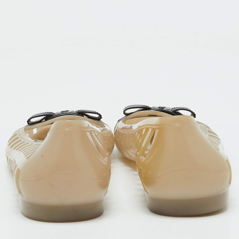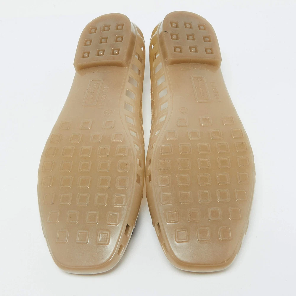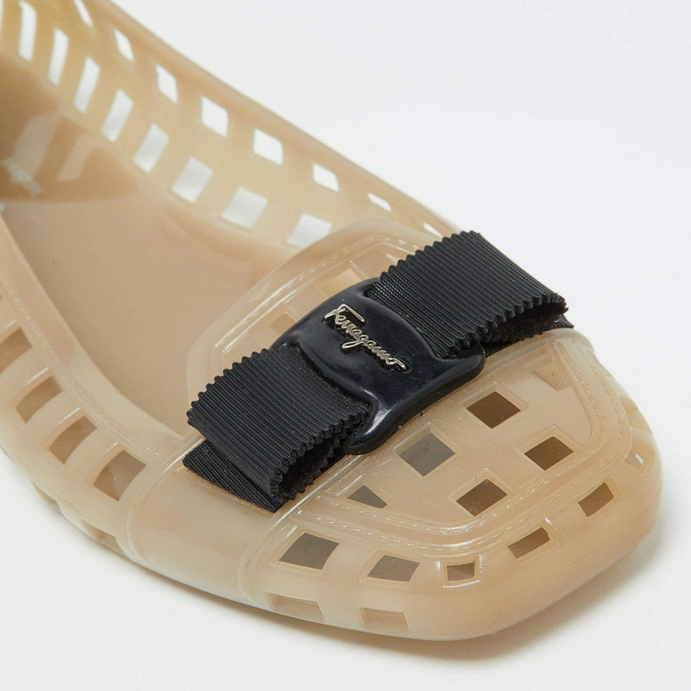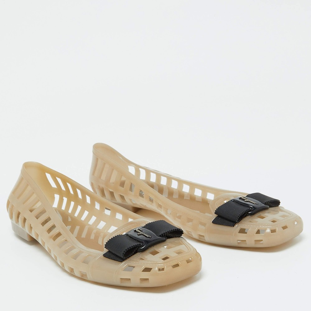 Our eBay Store About Us Contact Us Add to Favorite Sellers Salvatore Ferragamo Beige Jelly Laser CutOut Bow Ballet Flats Size 405 Defined by comfort and effortless style, no wardrobe is ever complete without a pair of chic ballet flats. This pair is lovely to look at and is equipped with elements like a comfortable insole and a durable sole. Product Details Brand Salvatore Ferragamo Color Beige Includes The Luxury Closet Packaging Outsole Length 26 cm Outsole Width 8 cm Size US 10 (EU 40.5/UK 7.5) Certified by The Luxury Closet This item has gone through a detailed authentication process overseen by our experts. We offer a lifetime guarantee of authenticity on all our items. How We Check The in-house team of experts at The Luxury Closet is highly trained to verify the authenticity and the condition of the luxury products. They ensure that only 100% authentic items are put on sale.The evaluation process is unique with its own mix of assessment criteria and differs according to the category. Each item is evaluated based on the following combination of hallmarks, hardware, stitching, symmetry, material, craftsmanship, stamping, codes, hologram stickers, and packaging. Our authenticators also check if the items have been modified or amended (e.g., aftermarket diamonds, replaced batteries, repaired bags, etc.) International Buyers Import duties, taxes and charges are not included in the item price. These charges are the buyers responsibility. Please check with your country’s customs office to determine what these additional cost will be prior to buying.