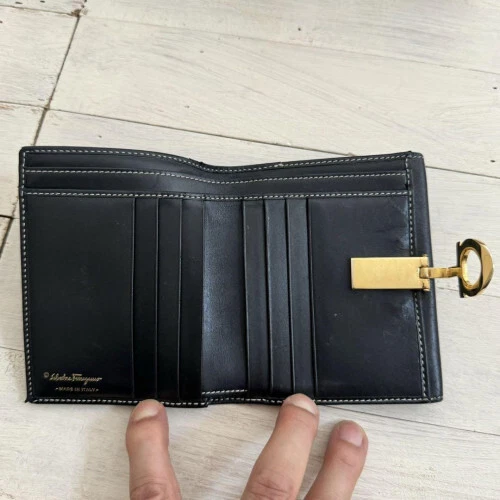 Salvatore Ferragamo Leather Bi-fold Compact Wallet Black 2546 Description Condition There are scratches and dirt associated with general use, but there is no problem with normal use. Please check the photos for details. Accessories None. *We will ship by FedEx. Short delivery time of about 2 to 10 business days from shipment to arrival. If you have any questions, please feel free to contact us. Shipping Standard Shipping. International Buyers - Please Note Import duties, taxes, and charges are not included in the item price or shipping cost. These charges are the buyer's responsibility. Please check with your country's customs office to determine what these additional costs will be prior to bidding or buying. Thank you for your understanding.