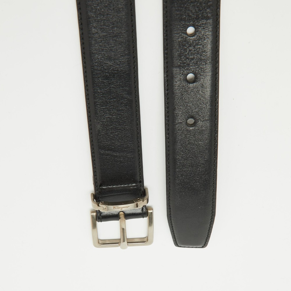 Salvatore Ferragamo Black Leather Buckle Belt 95CM Size