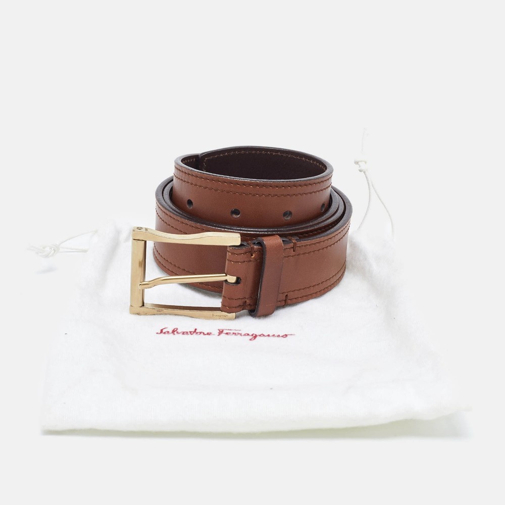 Exuding timeless elegance, this Salvatore Ferragamo belt in rich brown leather is finished with a polished buckle for a refined touch. Perfect for both casual and formal attire, it’s a must have for the modern gentleman.Certified by The Luxury Closet - This item has gone through a detailed authentication process overseen by our experts. We offer a lifetime guarantee of authenticity on all our items. Import duties, taxes and charges are not included in the item price. These charges are the buyers responsibility. Please check with your country’s customs office to determine what these additional cost will be prior to buying. Our eBay Store About Us Contact Us Add to Favorite Sellers Salvatore Ferragamo Brown Leather Buckle Belt 85CM $135.3 Exuding timeless elegance, this Salvatore Ferragamo belt in rich brown leather is finished with a polished buckle for a refined touch. Perfect for both casual and formal attire, it’s a must have for the modern gentleman. Product Details Brand Color Brown Dimensions Width: 3.5 cm, Length: 85 cm Material Leather Size 85CM Outsole Width Outsole Length Heel Height Includes Original Dustbag Certified by The Luxury Closet This item has gone through a detailed authentication process overseen by our experts. We offer a lifetime guarantee of authenticity on all our items. How We Check The in-house team of experts at The Luxury Closet is highly trained to verify the authenticity and the condition of the luxury products. They ensure that only 100% authentic items are put on sale.The evaluation process is unique with its own mix of assessment criteria and differs according to the category. Each item is evaluated based on the following combination of hallmarks, hardware, stitching, symmetry, material, craftsmanship, stamping, codes, hologram stickers, and packaging. Our authenticators also check if the items have been modified or amended (e.g., aftermarket diamonds, replaced batteries, repaired bags, etc.) International Buyers Import duties, taxes and charges are not included in the item price. These charges are the buyers responsibility. Please check with your country’s customs office to determine what these additional cost will be prior to buying.