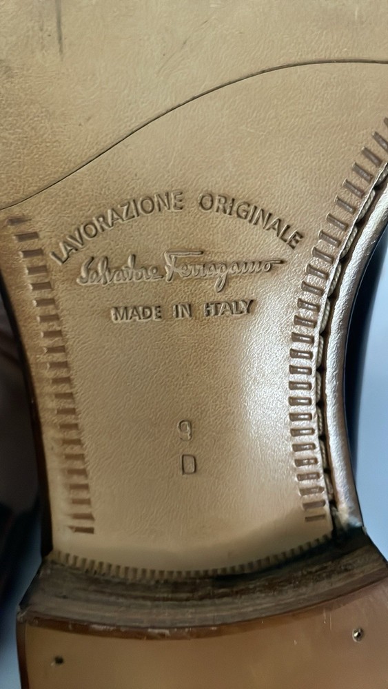 The Salvatore Ferragamo Dark Brown Leather Penny Loafers are a stylish and sophisticated choice for the modern man. Made in Italy with high-quality leather, these slip-on loafers feature a classic solid brown color with tasseled accents for added detail. The D width and leather lining provide comfort and a great fit, while the leather outsole ensures durability. Perfect for a dressy occasion or a stylish everyday look, these loafers are a timeless addition to any wardrobe.