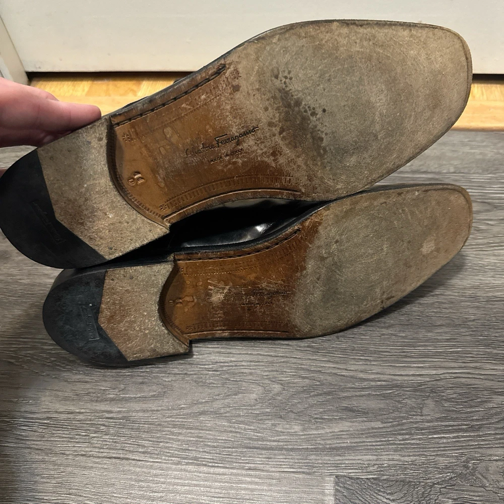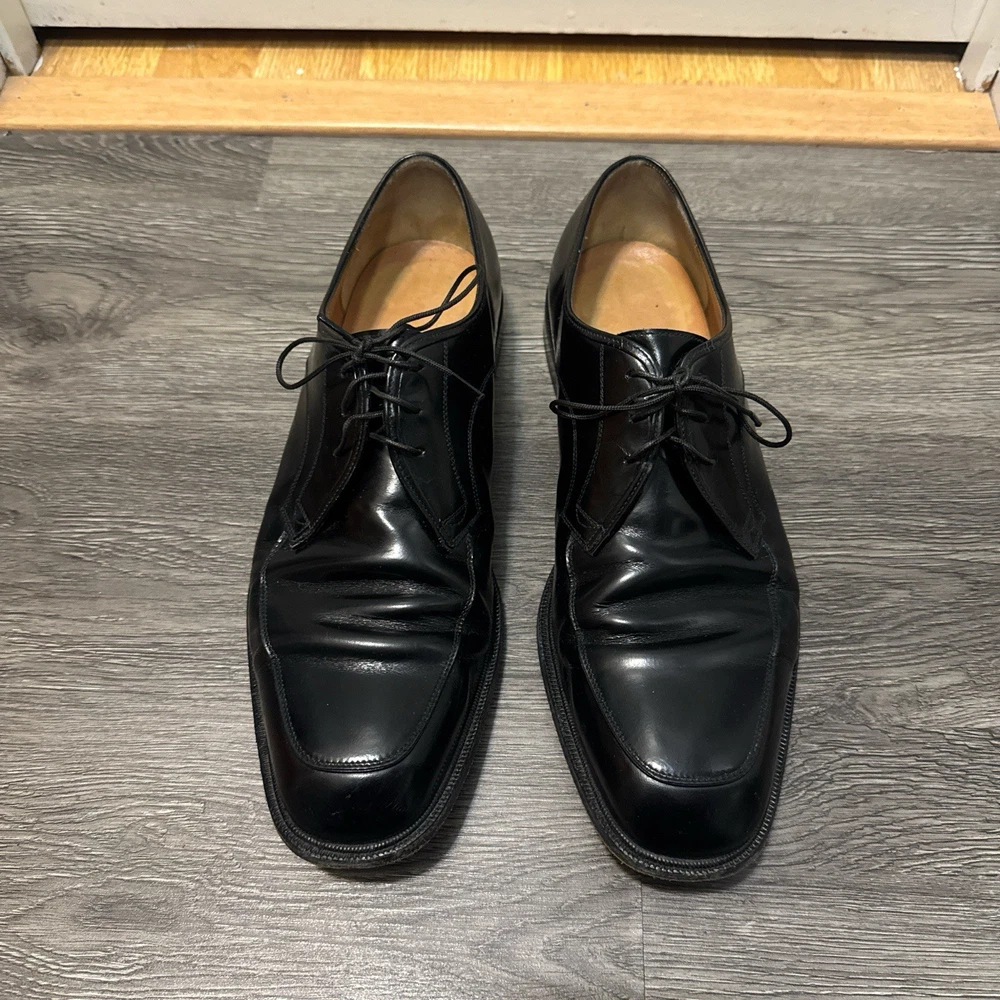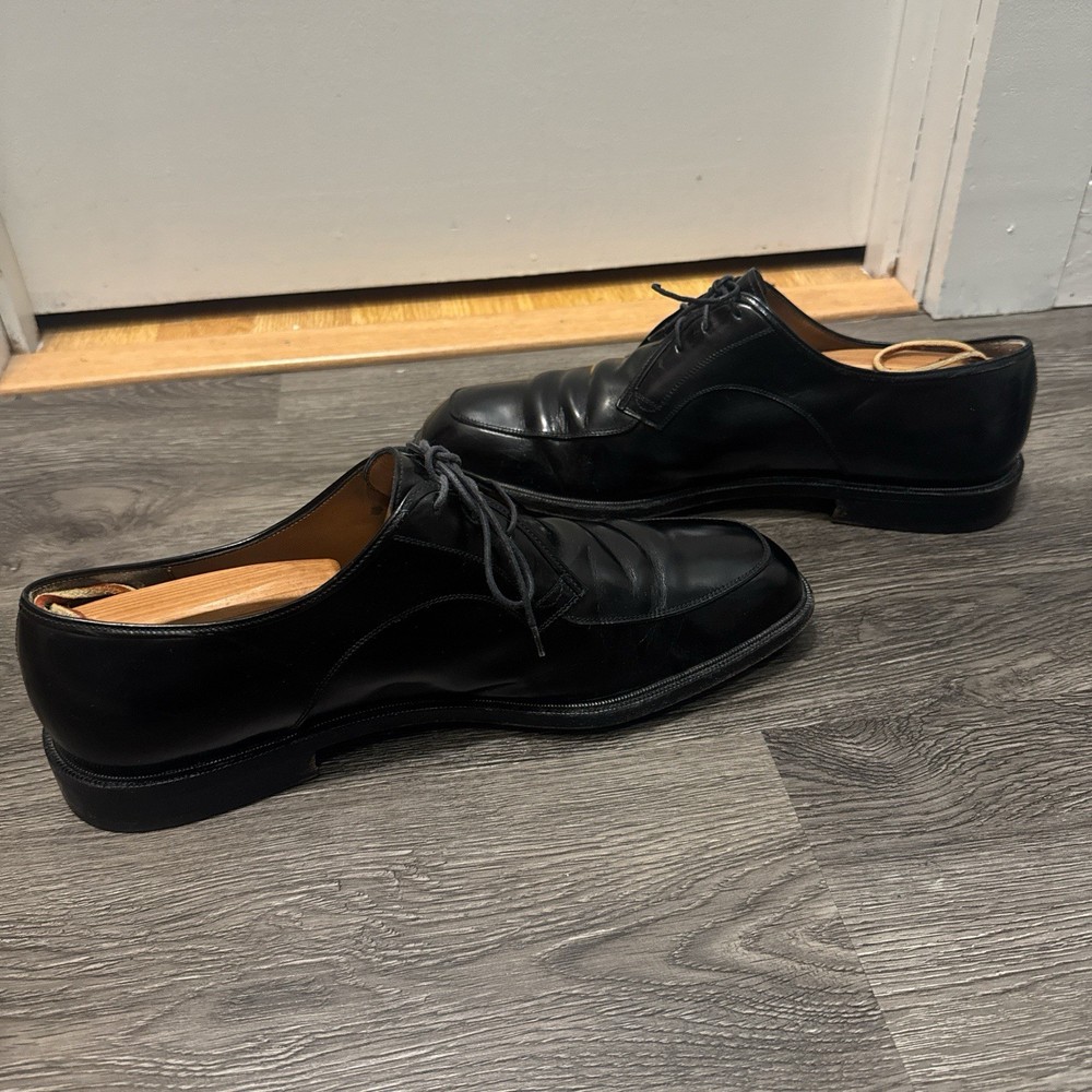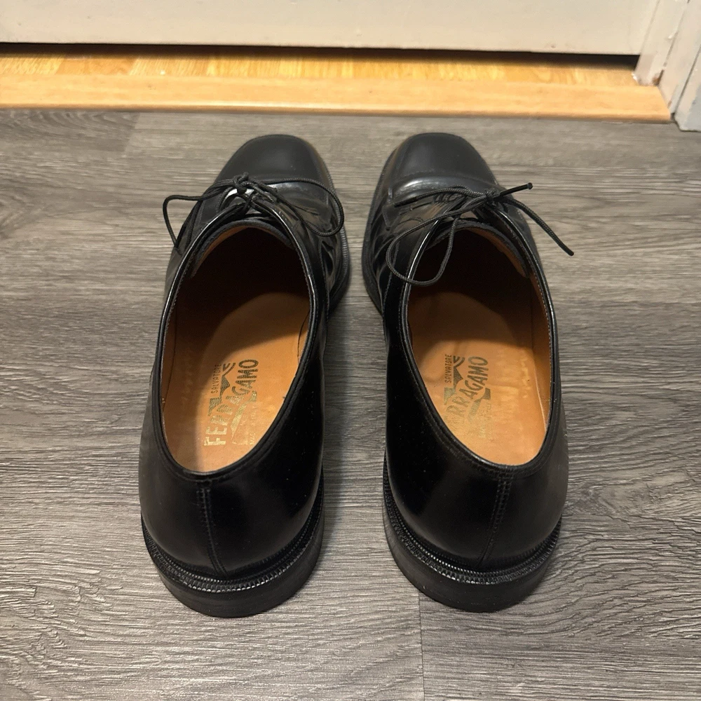 Salvatore Ferragamo Dress Shoes Mens 11 D Leather Oxford Lace Up Low Top Black Used Condition made in Italy Great Black Dress Shoe Does have some light wear shown overall nice shape #ferragamo #shoes #italy