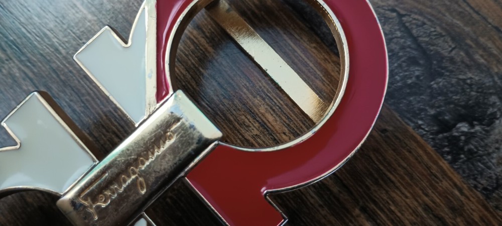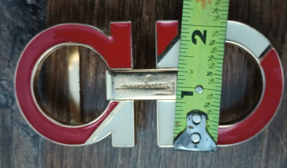 The Salvatore Ferragamo Gancini Gold Finish Red & White Belt Buckle is a luxurious accessory designed for men. Crafted from metal in Italy, this belt buckle showcases the brand's signature Gancini design with a gold finish and bold red and white colors. The high-quality materials and craftsmanship make it a stylish and sophisticated addition to any outfit, perfect for those looking to elevate their wardrobe with a touch of elegance and prestige.