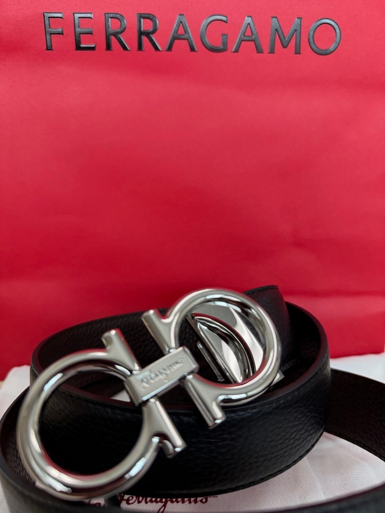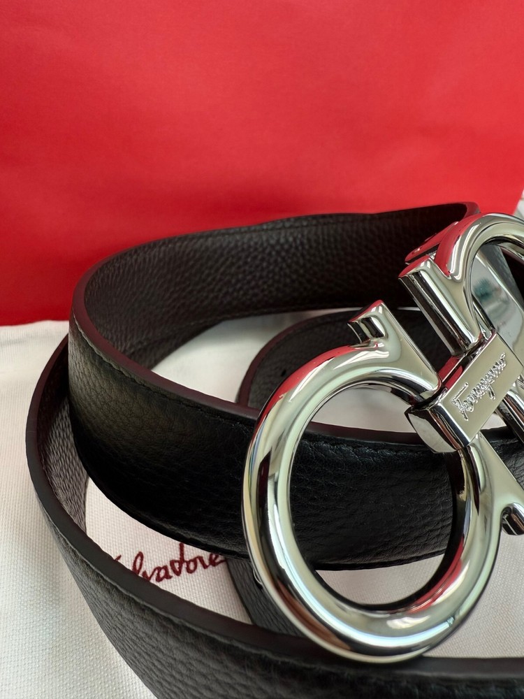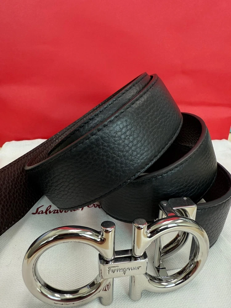 Salvatore Ferragamo Men's Black / Brown Reversible Leather Belt Size 120 cm fits 42/44 Waist, in New Condition comes with Dust Bag, Tag's. "This belt can be adjusted to a smaller size." NEW BELT.
