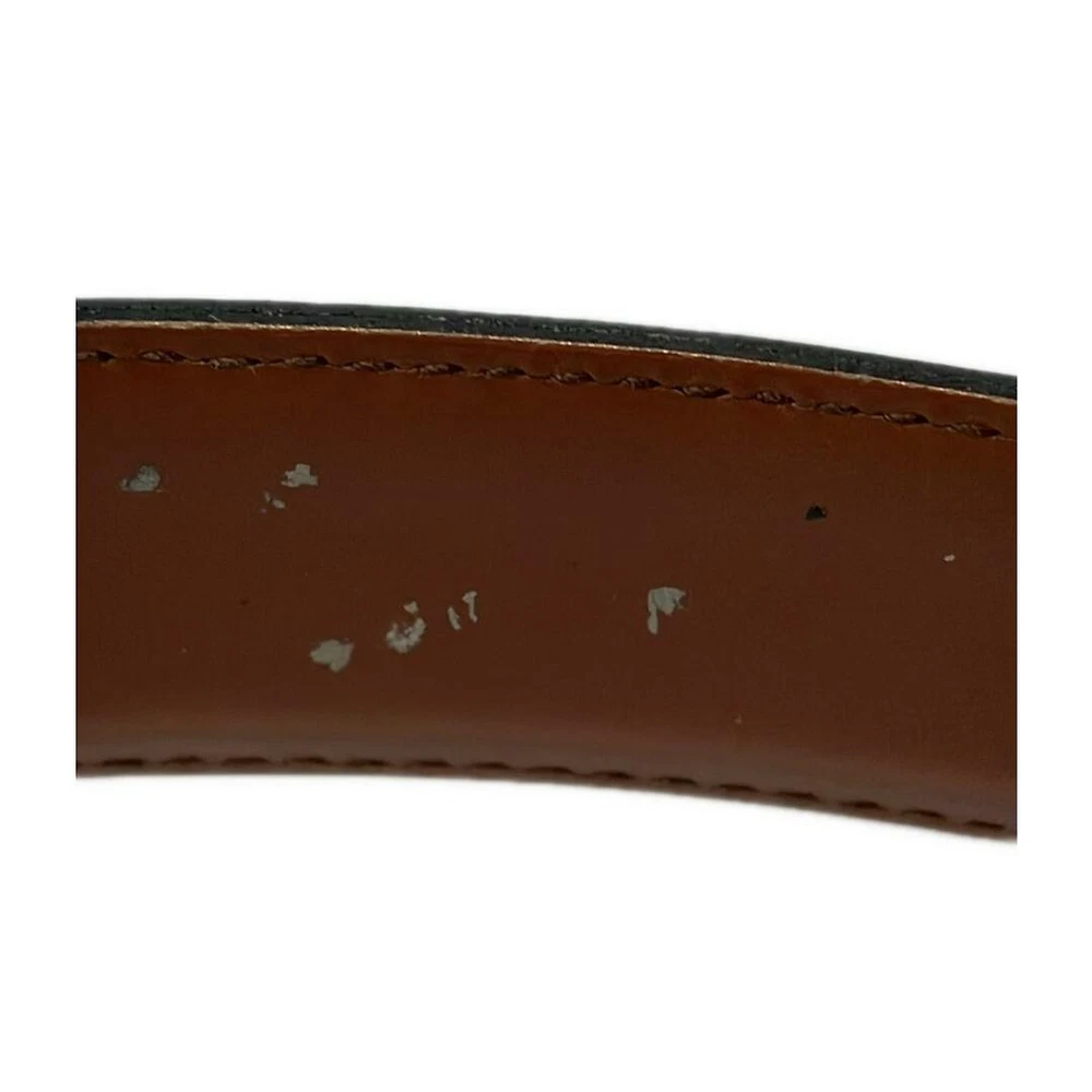 This belt is a stylish steal! The silver buckle adds a sleek touch, and the distressed details give it a cool, lived-in vibe. Despite the listed wear, it’s in great condition—perfect for elevating casual or dressy looks. Shipping was smooth, arrived well-packaged, and the quality is exactly what you’d expect from Ferragamo. Very happy with this purchase!